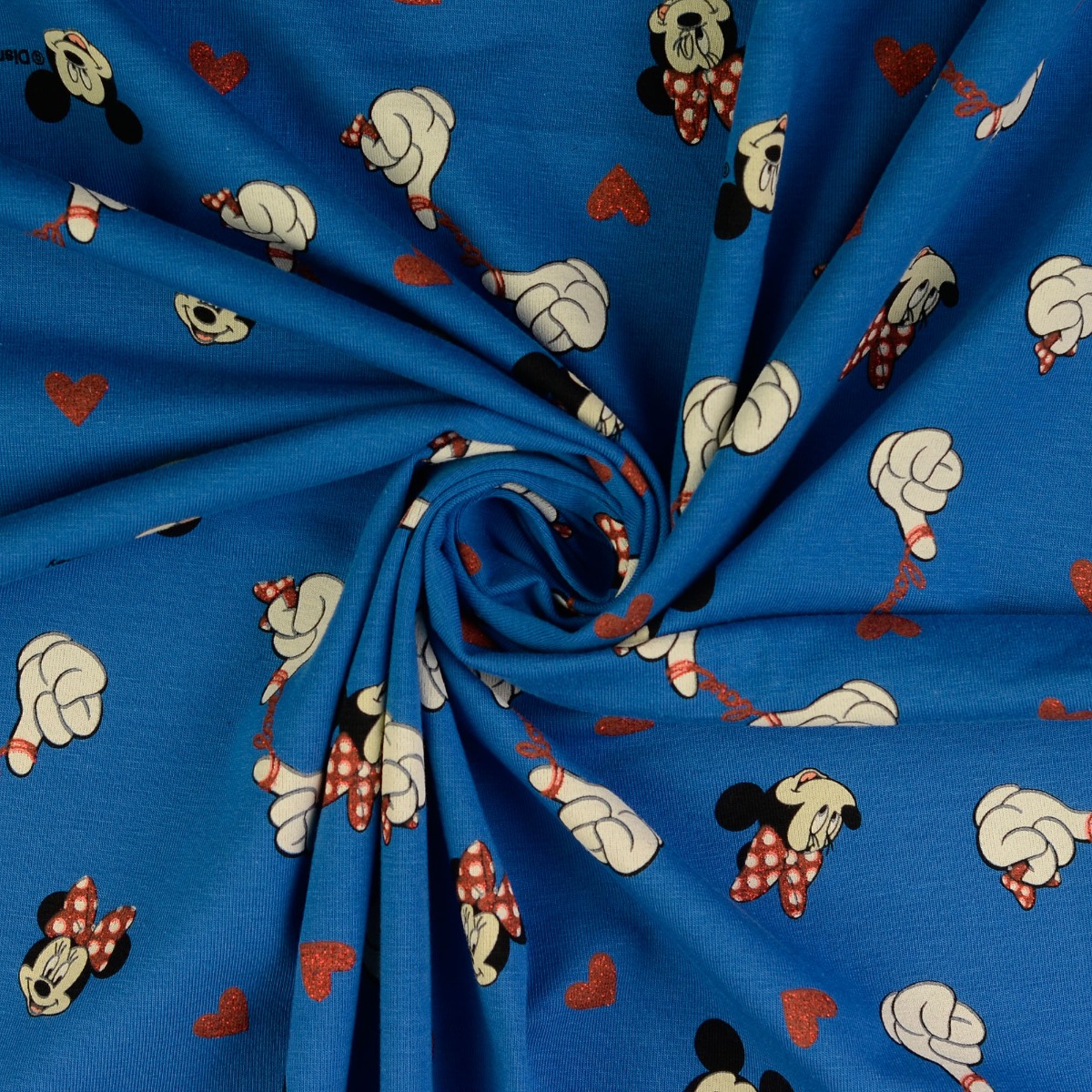 Jersey GLITZER Mickey & Minnie Mouse LOVE auf Blau Lizenz Digital