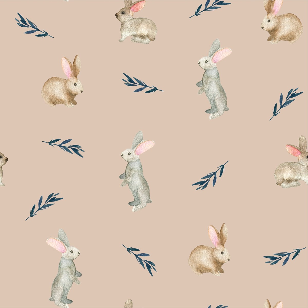 Jersey Häschen & Gräser auf Hellbeige Digital