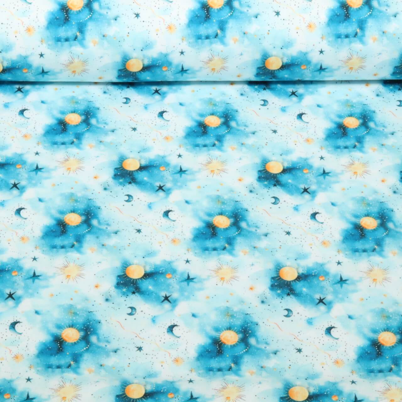 Jersey - Digitaldruck Himmelskörper Weiß Blau