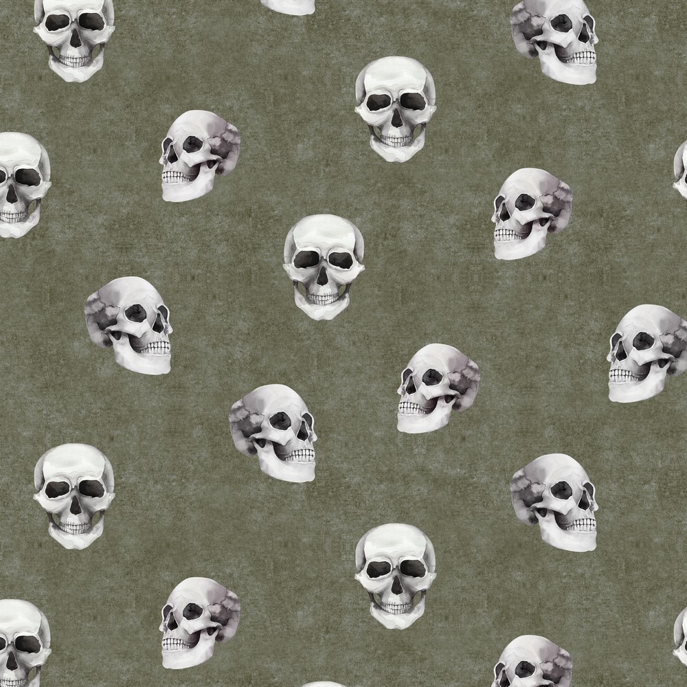 Jersey Jeansoptik Skulls auf Khaki Digital BIO