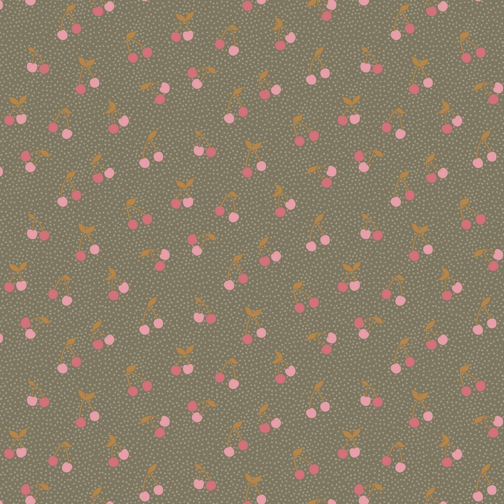 Jersey Kirschen & Pünktchen auf Olivgrün BIO