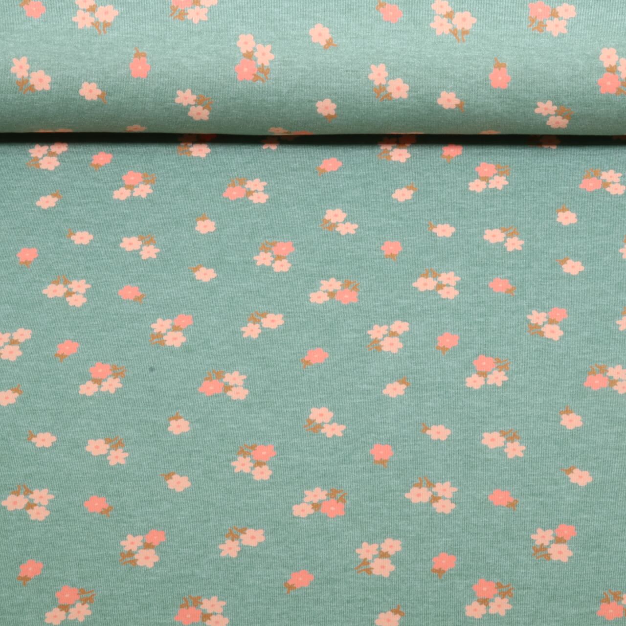 Jersey - Mille Fleur Blumen Mint Melange