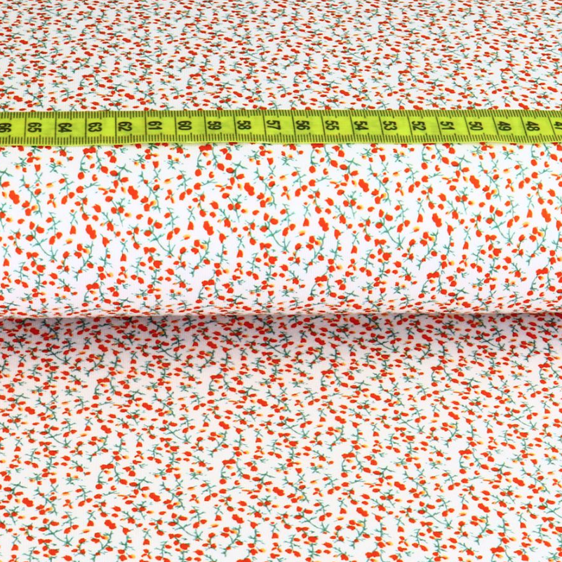 Jersey Mini Flowers Rot auf Weiß