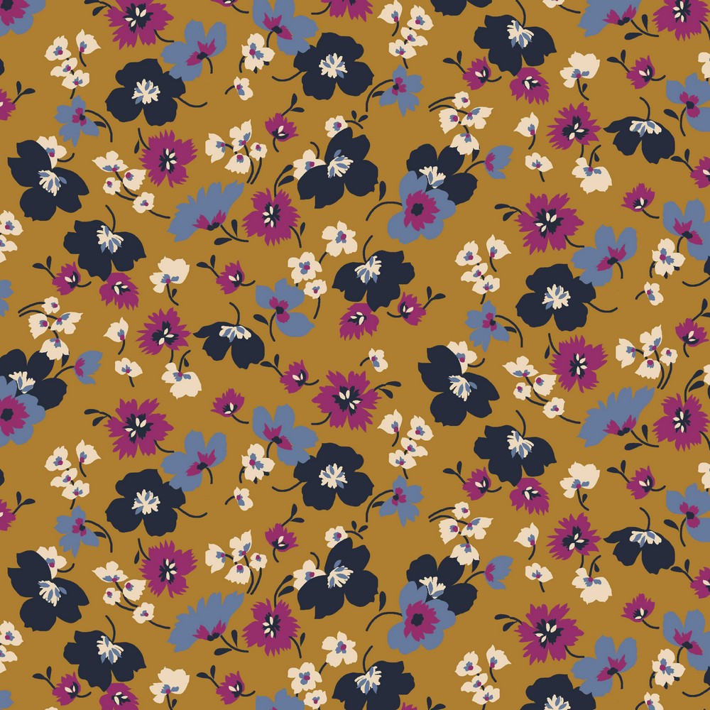 Jersey Modal Blüten auf Senfgelb Tencel™