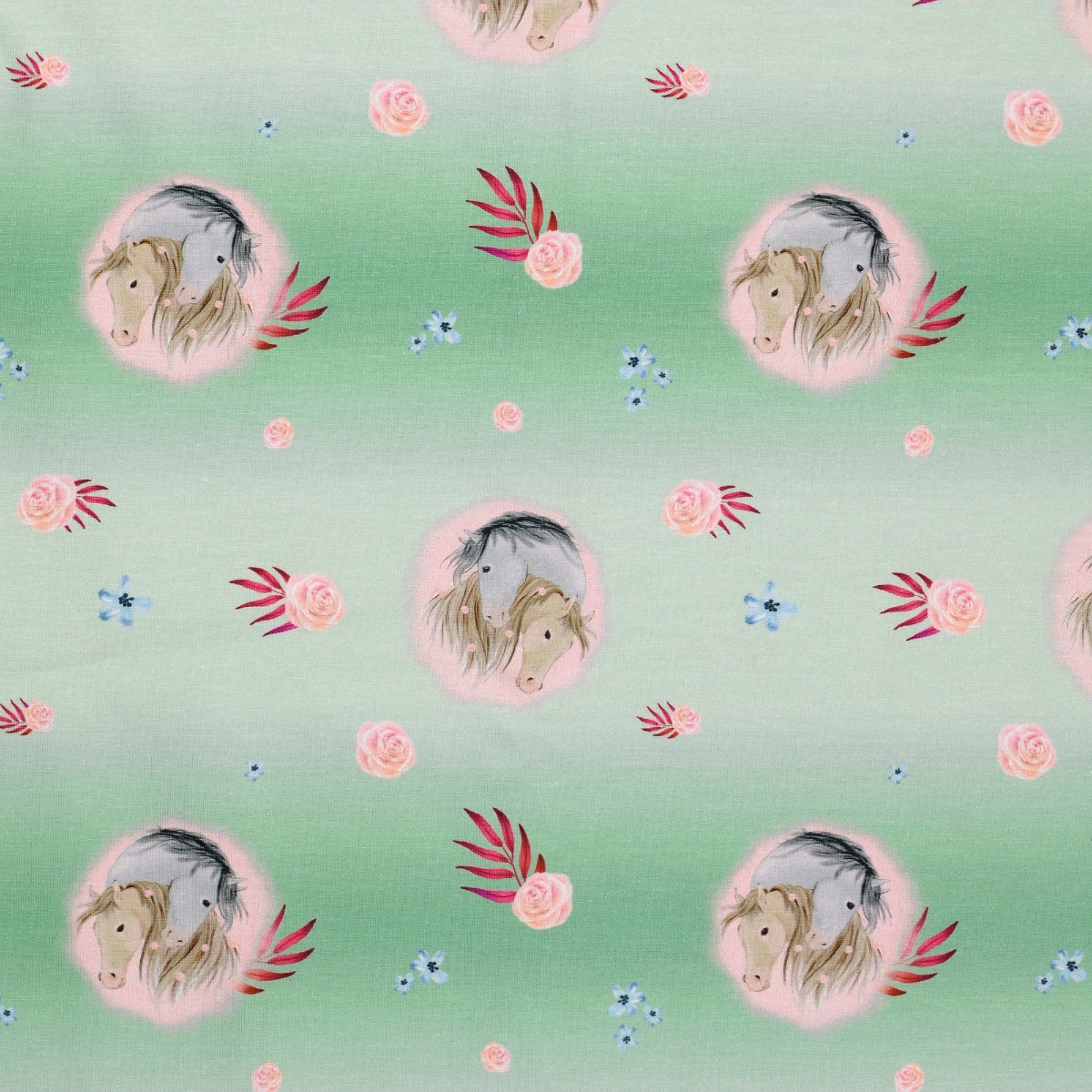Jersey Pferdeportraits auf Hellgrün Digital