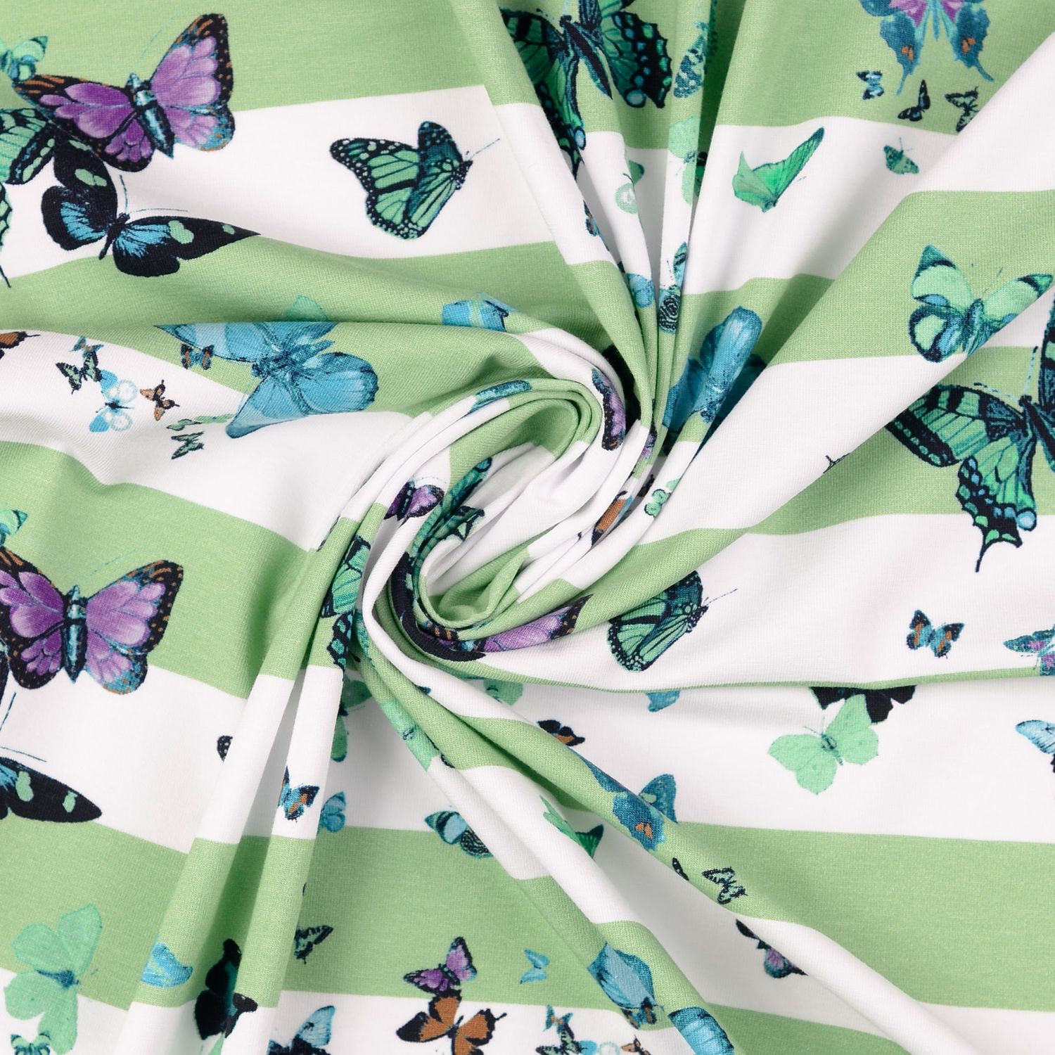 Jersey Schmetterlinge auf Streifen Lindgrün/Weiß Digital