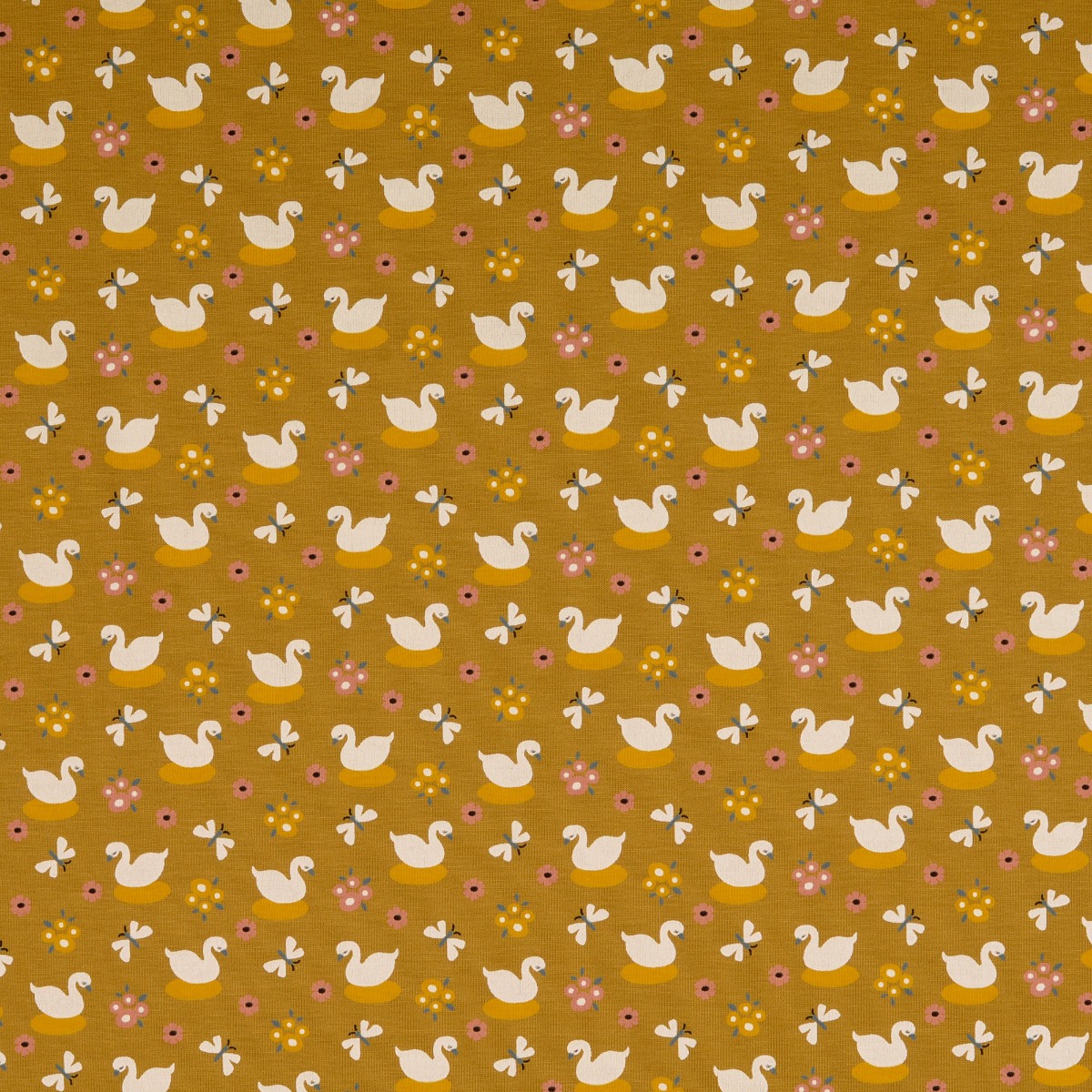 Jersey Schwäne im Teich Ockergelb PIGMENTDRUCK ORGANIC
