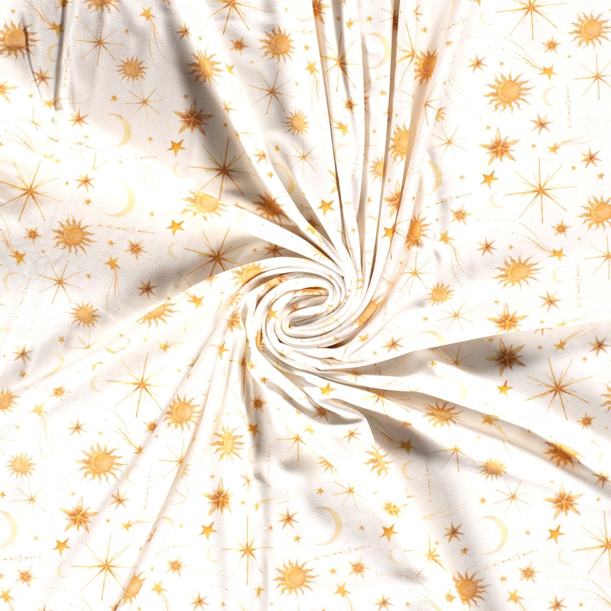 Jersey Sonne & Sterne auf Cremeweiß Digital