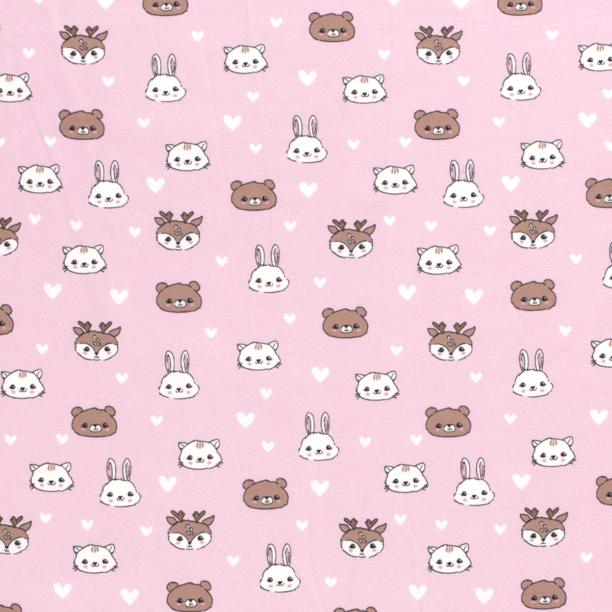 Jersey Süße Tiergesichter & Herzen auf Hellrosa