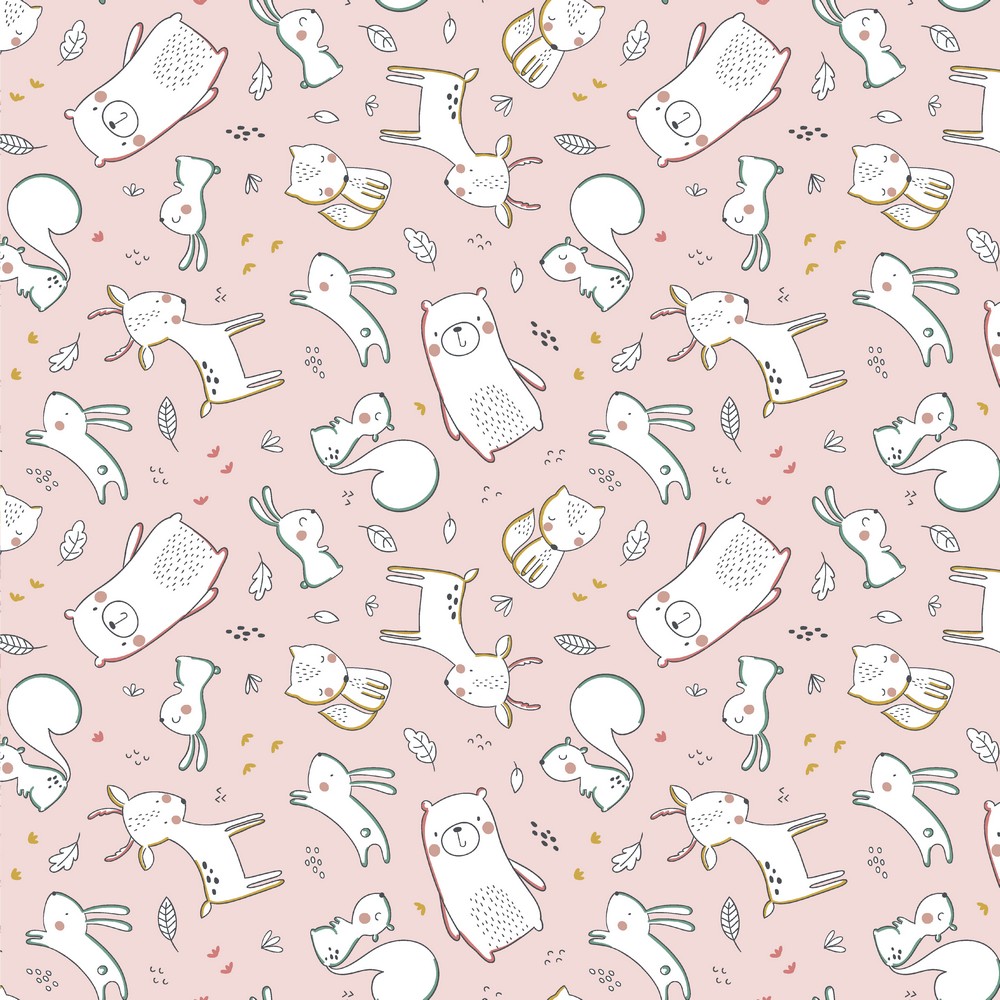 Jersey Sweet Forrest Animals auf Hellrosa BIO