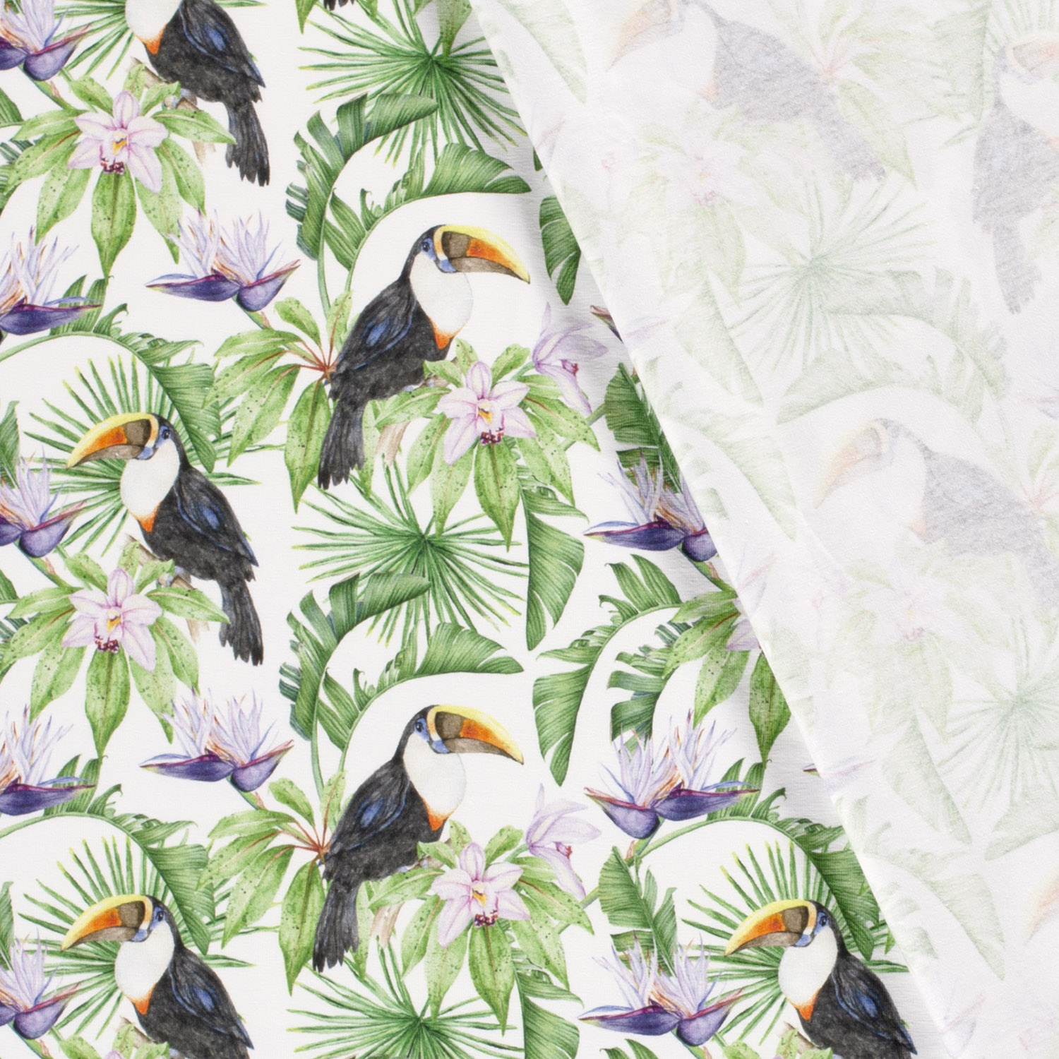 Jersey Tukane und Palmenblätter auf Weiß Digital