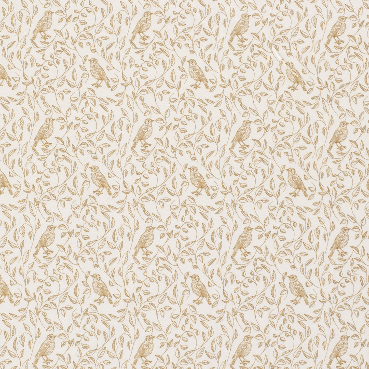 Jersey Vögelchen und Zweige Dunkles Senfgelb auf Creme
