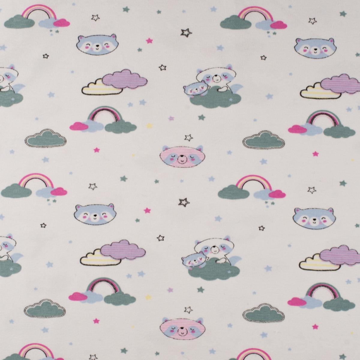 Jersey Waschbär in den Wolken Dunkelmint/Pink auf Creme