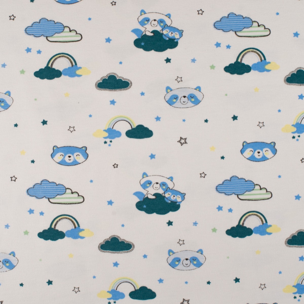 Jersey Waschbär in den Wolken Hellblau/Petrol auf Creme