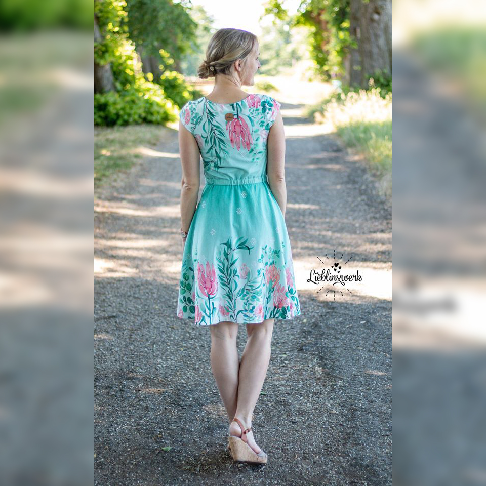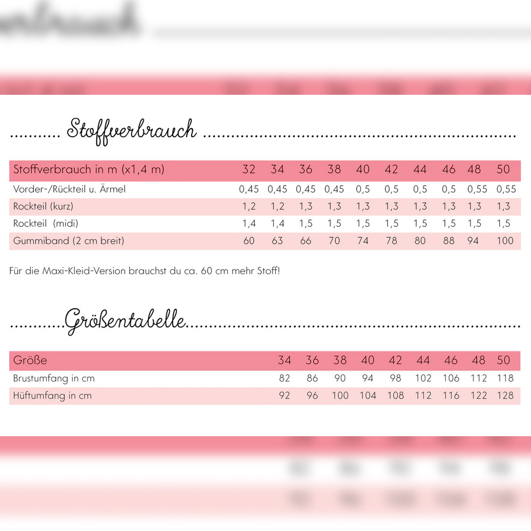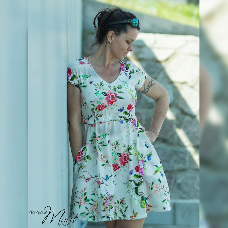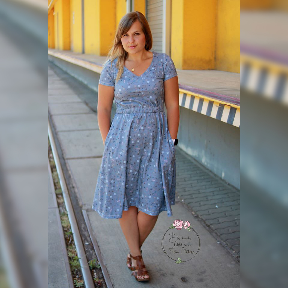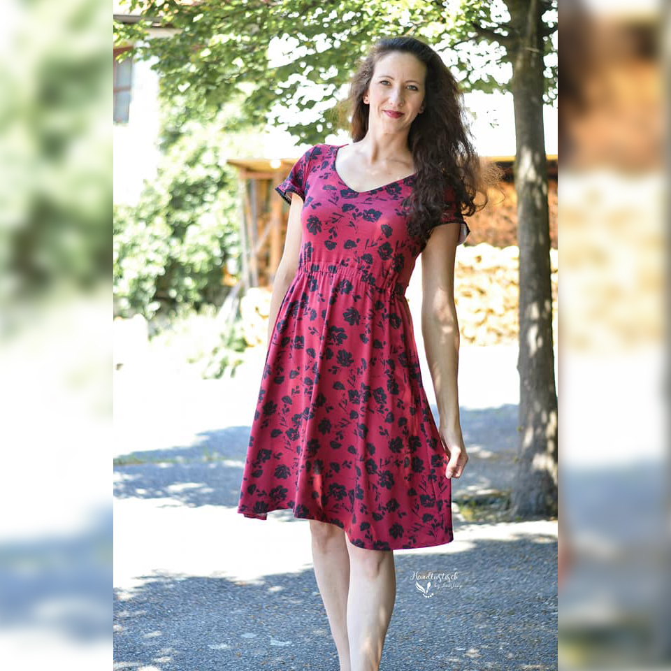 Hertha ist luftig leicht und wird unter der Brust mit einem Gummizug figurbetont gerafft. Ob einfarbig und schlicht oder blumig und feminin, dein Hertha schmeichelt deiner Figur und wird dir als Mini-, Midi- oder Maxikleid viel Freude bereiten. Das Schnittmuster "Hertha" enthält die Größen 32-50.