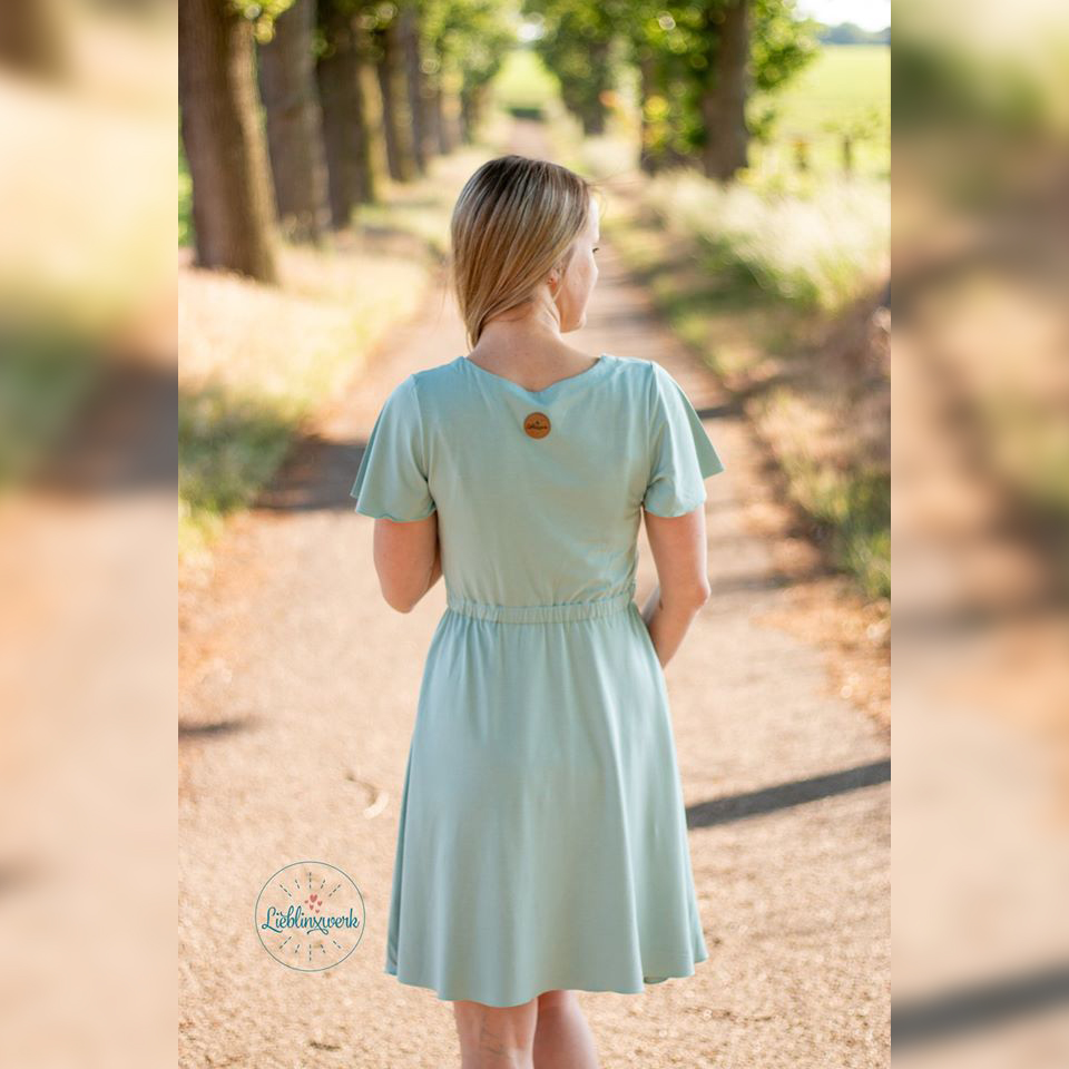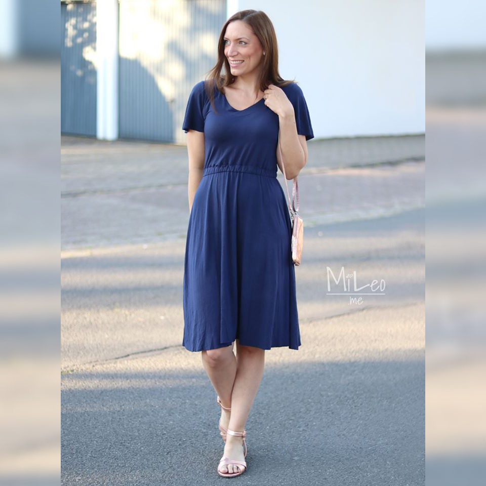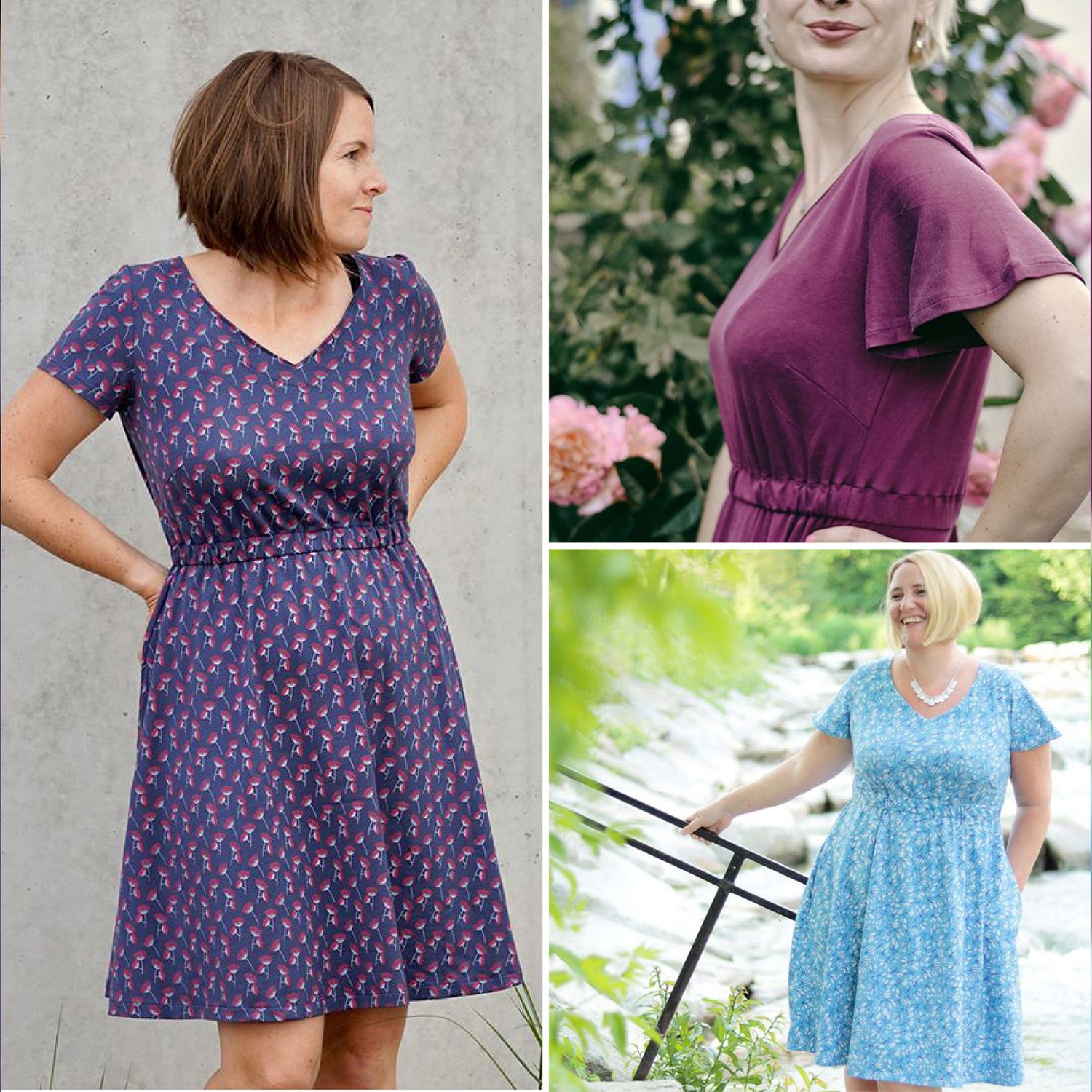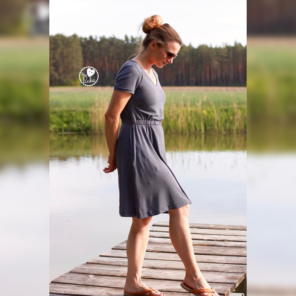 Hertha ist luftig leicht und wird unter der Brust mit einem Gummizug figurbetont gerafft. Ob einfarbig und schlicht oder blumig und feminin, dein Hertha schmeichelt deiner Figur und wird dir als Mini-, Midi- oder Maxikleid viel Freude bereiten. Das Schnittmuster "Hertha" enthält die Größen 32-50.