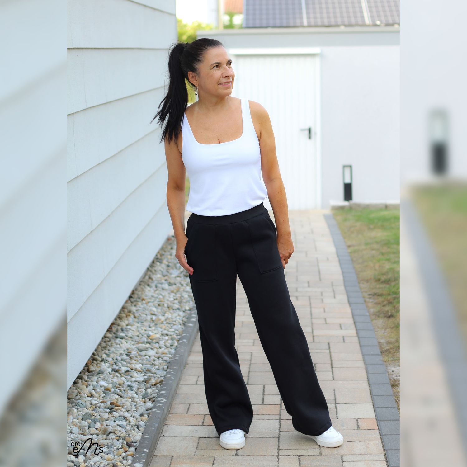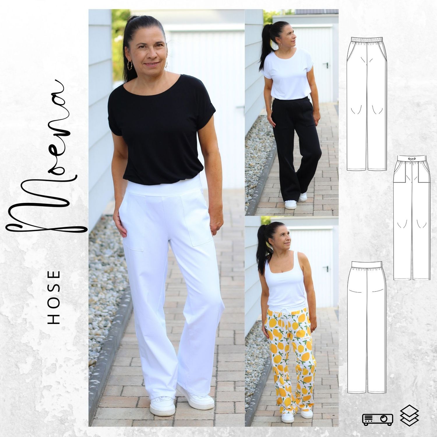 Die Hose MOENA ist bequem, vielseitig und zeitlos – ideal für Alltag, Sport oder gemütliche Stunden. Sie bietet maximale Freiheit beim Nähen mit Größen 32–56, drei Längenvarianten ( 1,58/1,68/1,78m) und vielen Gestaltungsoptionen: gerade Beine, verschiedene Taschenarten und Bauchbündchen-Varianten. Die moderne, gerade Silhouette liegt voll im Trend und begeistert Teens. Perfekt für Anfänger:innen und Fortgeschrittene, die ihren Stil individuell umsetzen möchten.