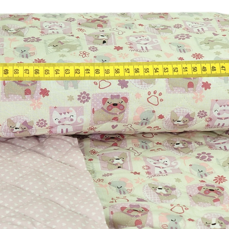 Kindersteppstoff Double Face Tiere & Herzchen Rosa/Hellbeige