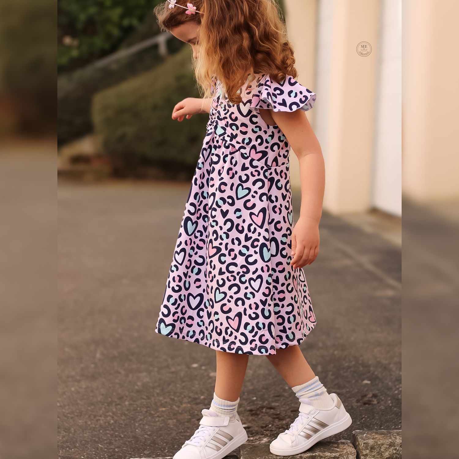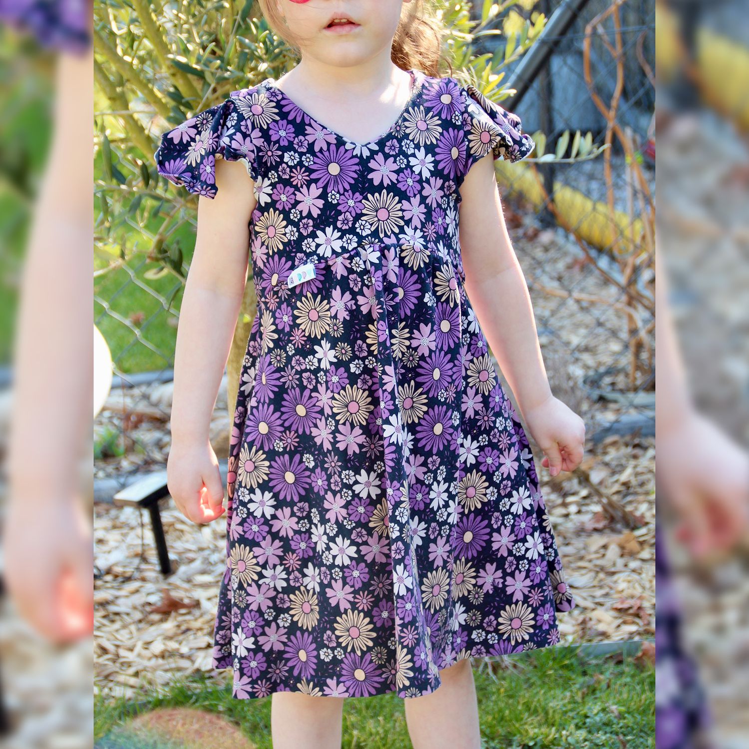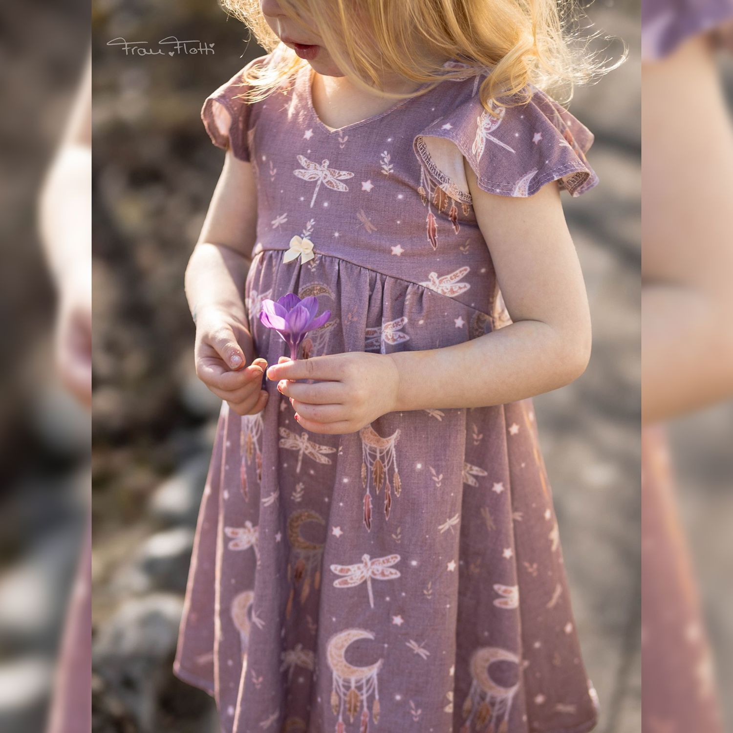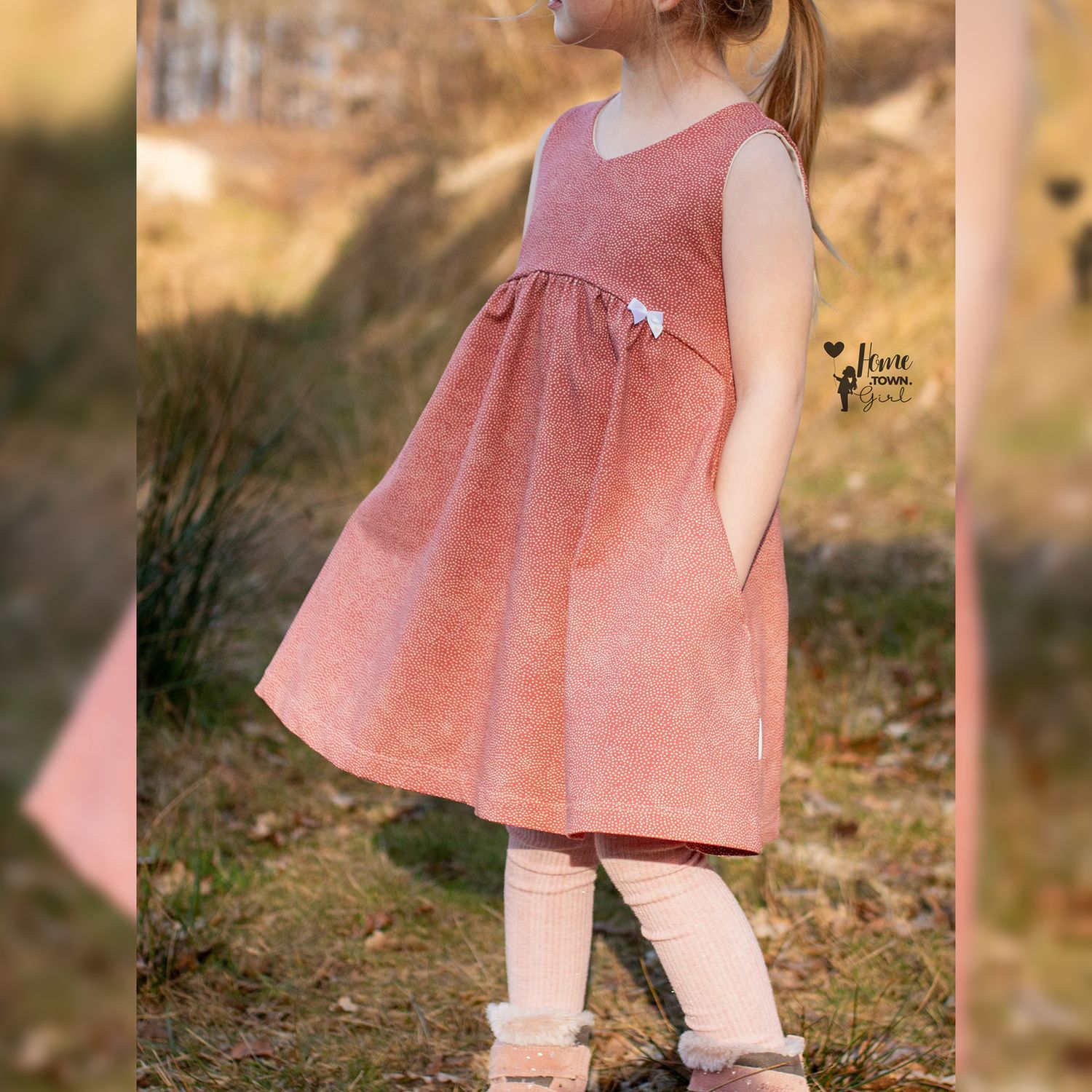 Das Dreamy Dress ist ein luftiges Sommerkleid für Kinder. Du kannst es mit gerafftem oder ungerafftem Vorderteil und in zwei verschiedenen Längen nähen. Das Rockteil kann nach Belieben ebenfalls gerafft werden. Es wird entweder ärmellos oder mit Flatterärmeln genäht. Optional können Nahttaschen hinzugefügt werden. Das Schnittmuster ist für NähanfängerInnen geeignet.
