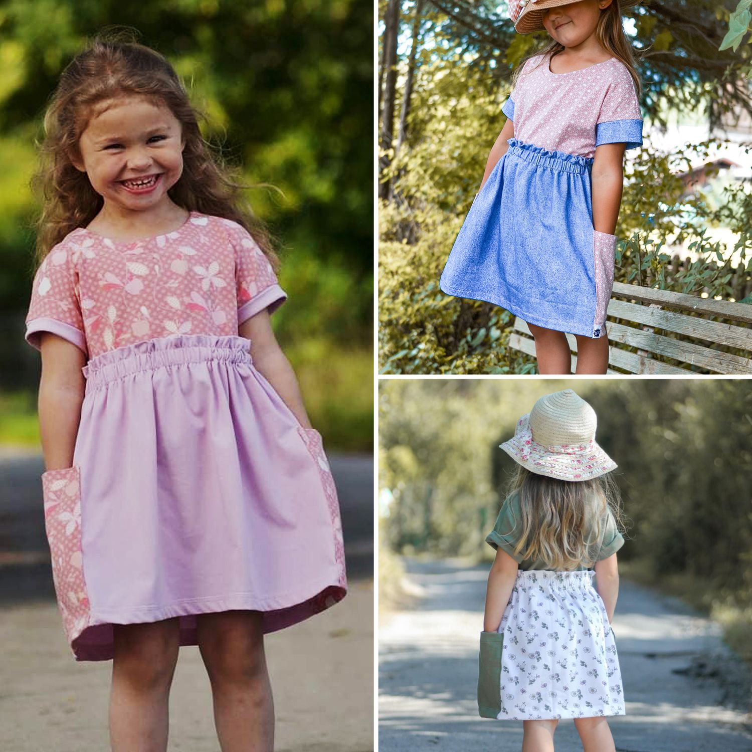 Die großen Taschen laden zum Sammeln von Steinen und Stöckern ein und bieten die ideale Möglichkeit für Stoffmix-Projekte. Egal ob blumig & bunt oder einfarbig & schlicht Hanni ist das Schnittmuster für niedliche Kleider, die Mamas und Kinder glücklich machen!