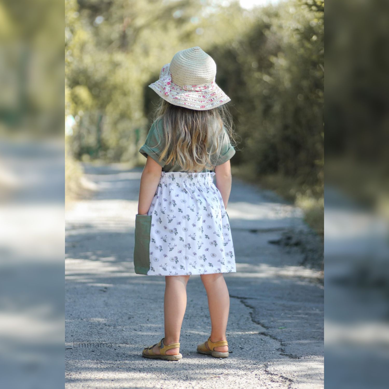 Hanni ist ein Schnittmuster für ein sommerliches, verspieltes Mädchen-Kleid. Der Mix aus sportlichem Look am Oberteil und mädchenhaft gerafftem Rock macht das Kleid unverwechselbar!