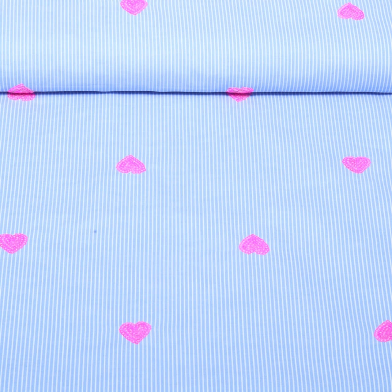 Kleider und Blusenstoff - Streifen Paillettenherzen Blau