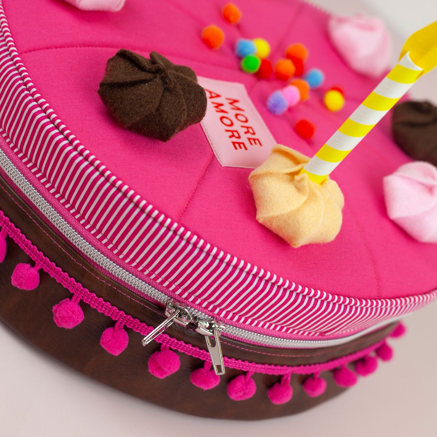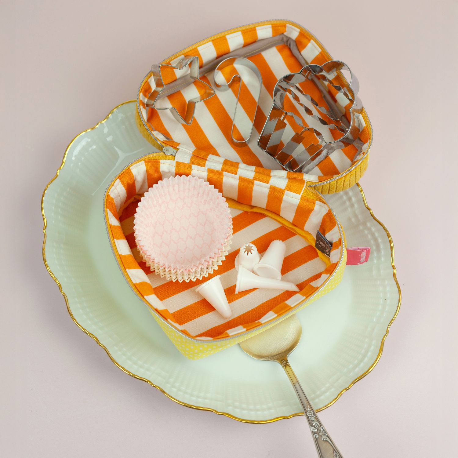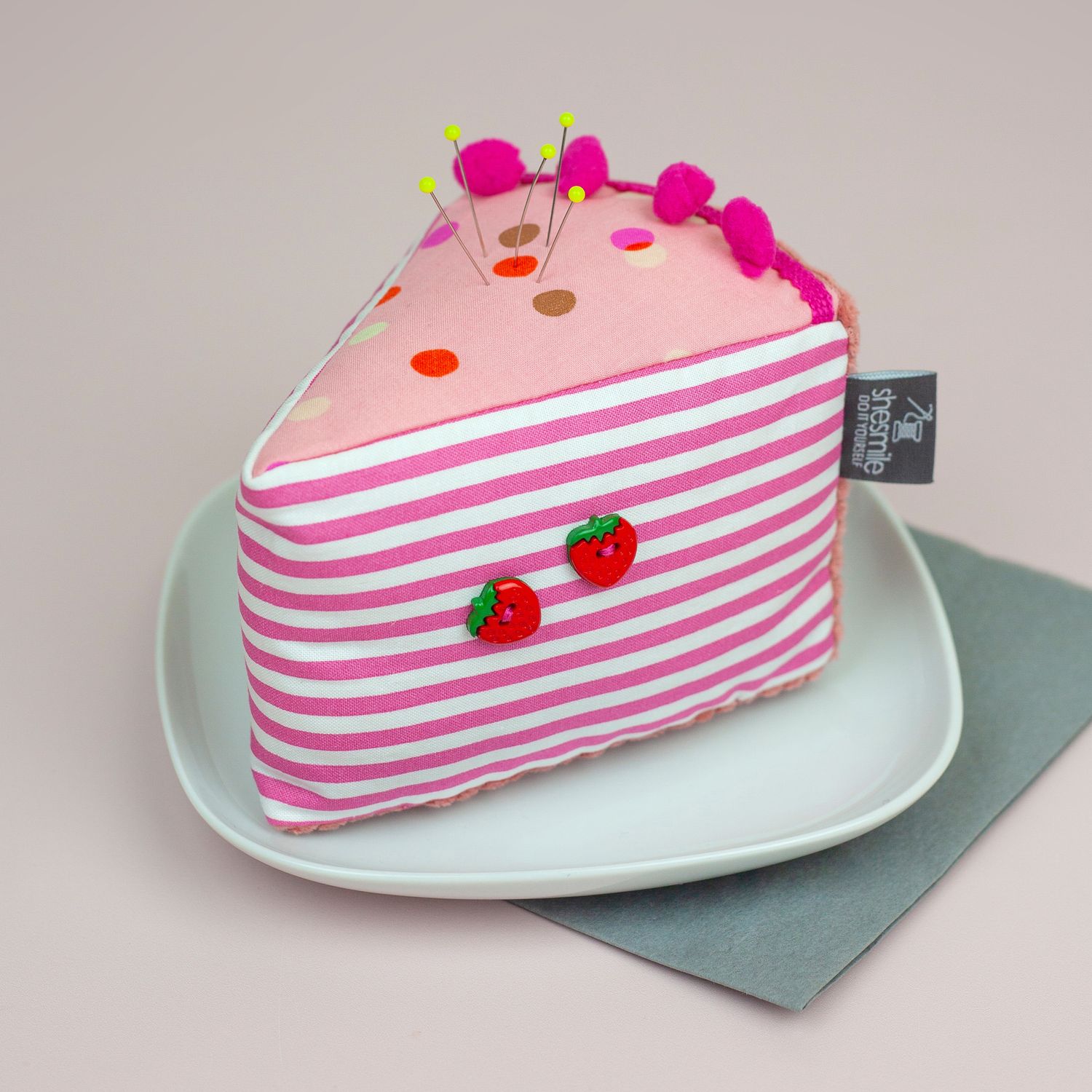 Und wie du es von shesmile kennst, stecken natürlich auch in diesem Schnittmuster wieder jede Menge kreative Zusatzfunktionen: Nähe die Torte oder einzelne Stücke mit Reißverschluss und verwandle sie so in eine praktische Aufbewahrung oder eine ganz besondere Verpackung für Geschenke und Süßkram. Auch lassen sich hier prima Backförmchen, Streusel oder Nähzubehör verstauen. Die ganze Torte ist eine prima Hülle für eine Springform in ø 26 cm Größe. Das Viertel ist eine ideale Aufbewahrungstasche für das Mini-Bügeleisen von Prym.