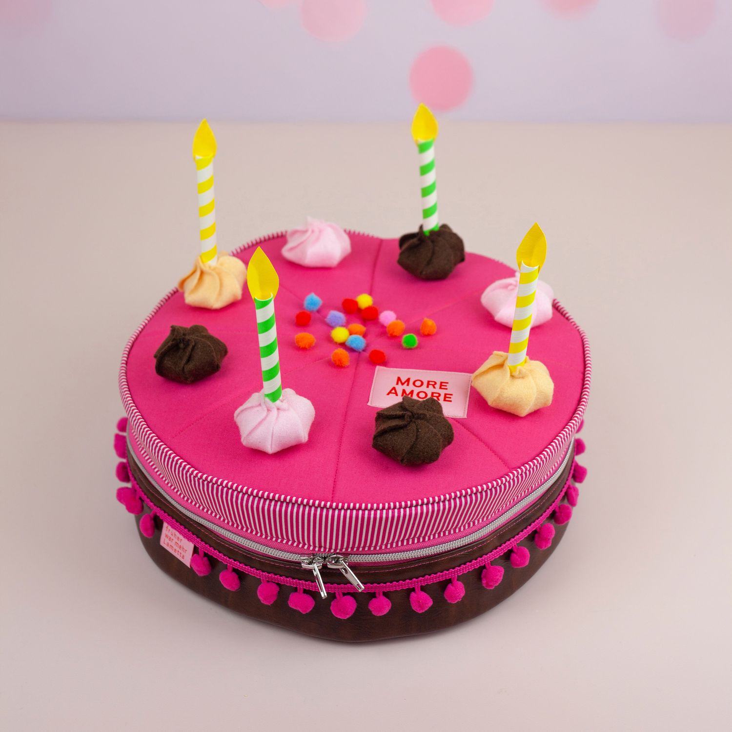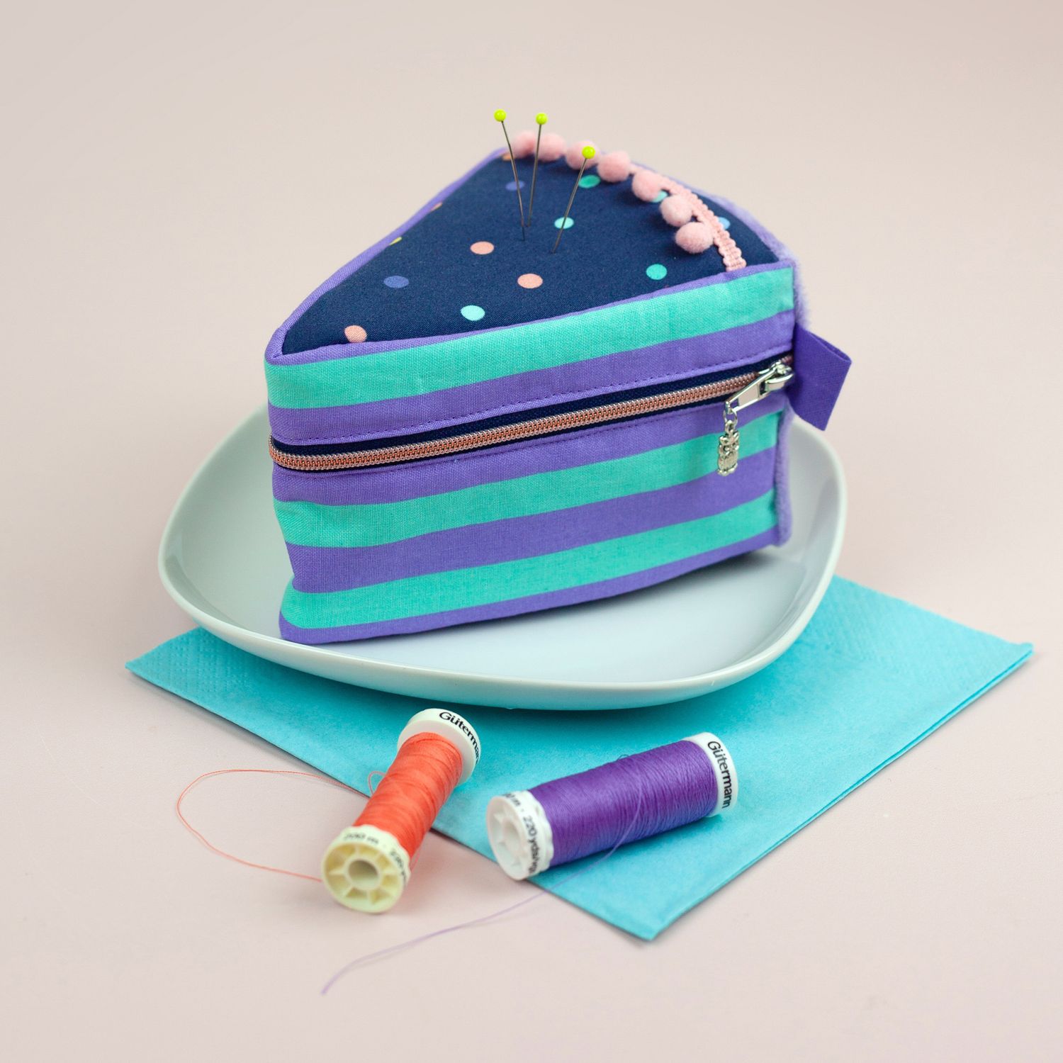 Du hast die Wahl: Nähe eine ganze Torte, ein Viertelstück oder nur ein kleines Achtel. Der TortenTraum lässt sich vielseitig einsetzen: Als Nadelkissen auf dem Nähtisch, als Spieltorte für die Kinderküche, als wiederverwendbare Geburtstagstorte, bei der jedes Jahr ein Stück oder Kerze dazu kommt.