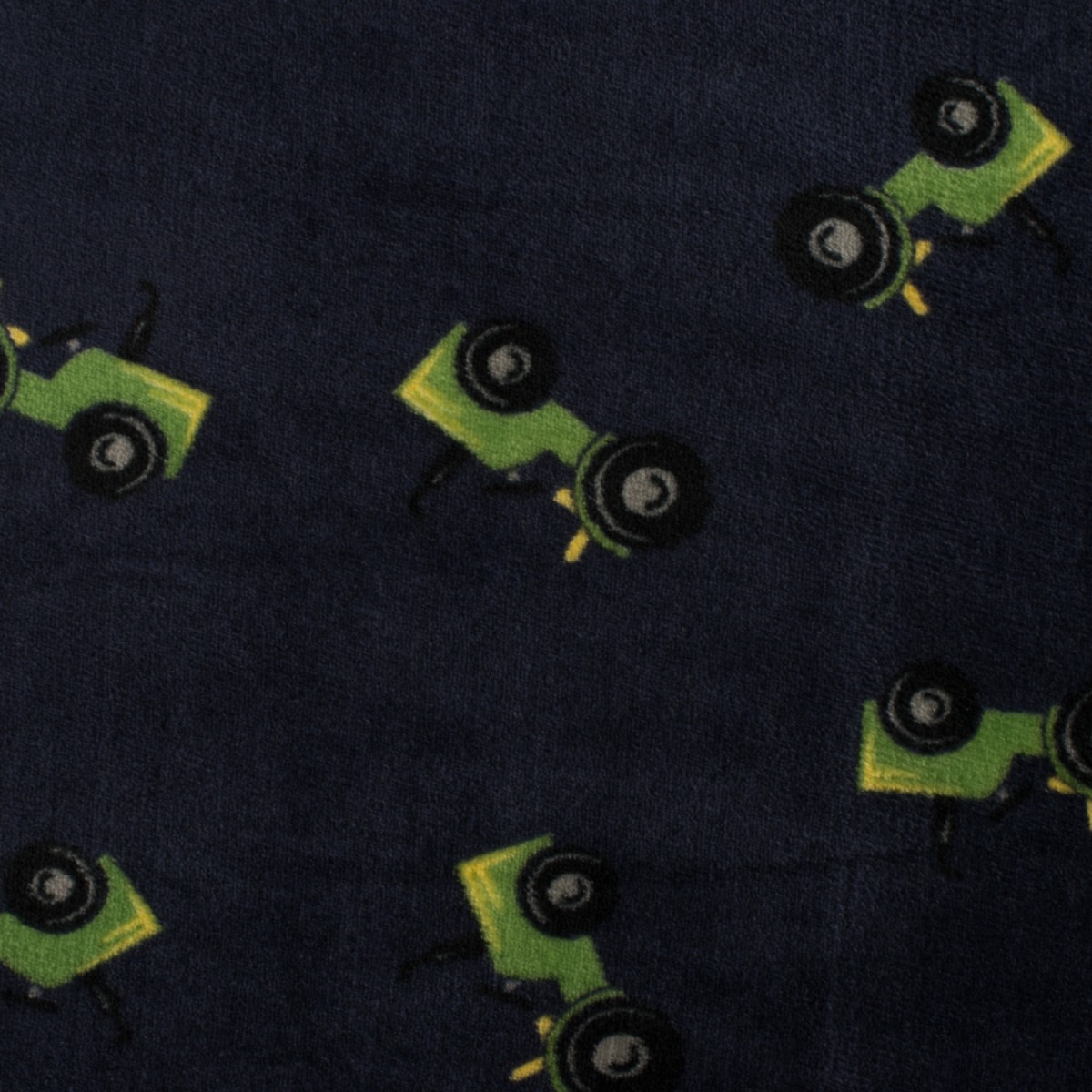 Kuschelfleece Double Face Traktor auf Dunkelblau