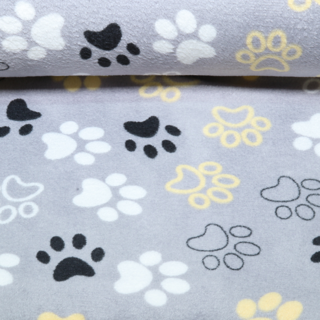 Kuschelfleece - Doubleface Tierpfoten Grau