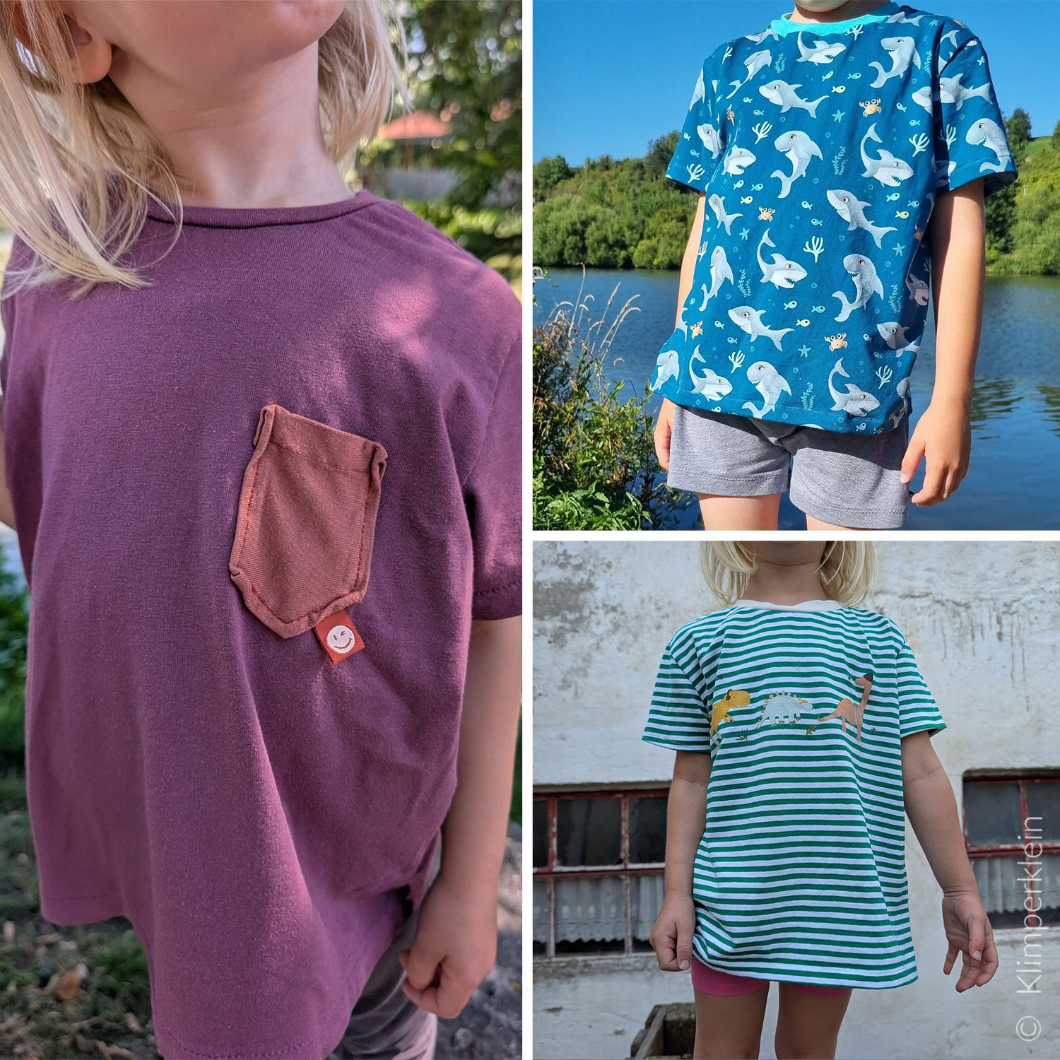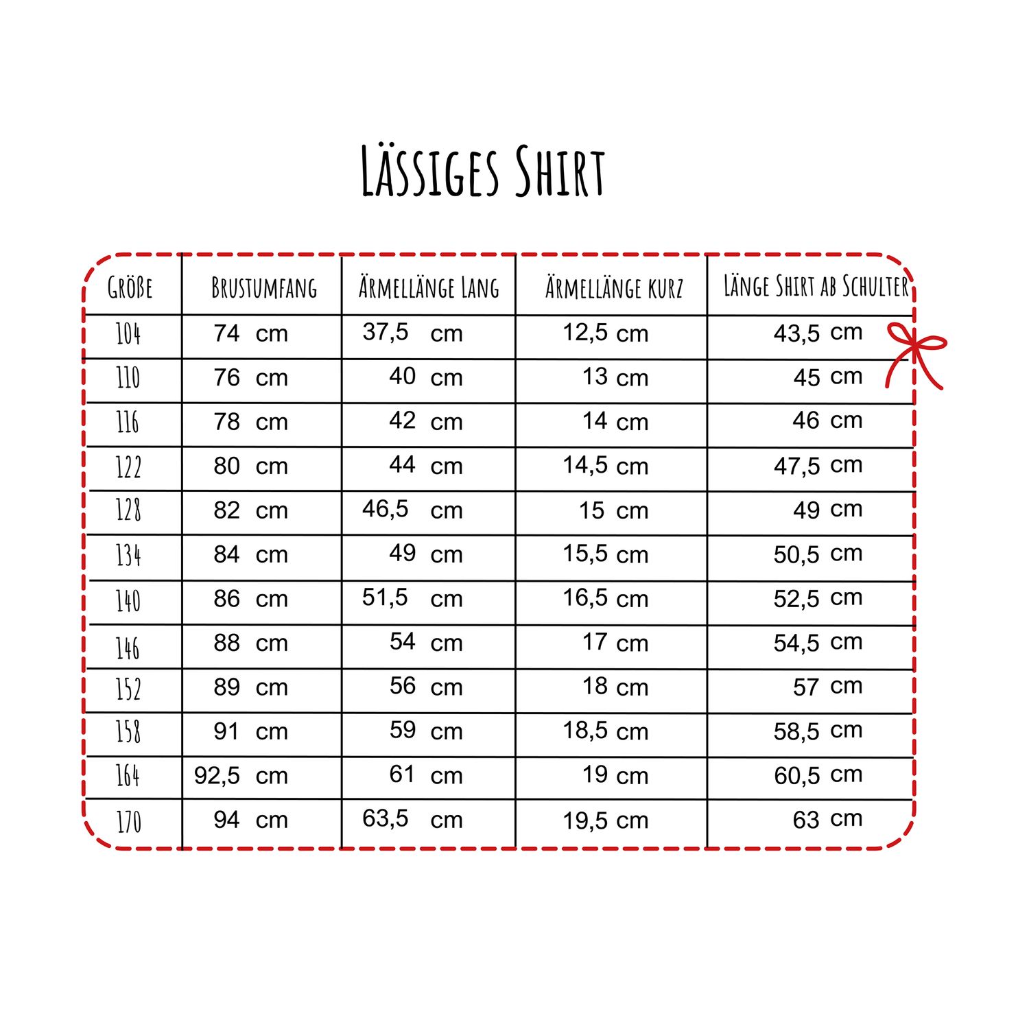 Um deine gewünschte Passform zu ermitteln, findest du die Körpermaßtabelle, die der Konstruktion zu Grunde liegt, in der Bildergalerie. Ebenso kannst du dort die Fertigmaßtabelle des Shirts finden. Miss das Kind oder ein passendes Kleidungsstück aus, um ein Gefühl für die Passform der verschiedenen Shirts zu bekommen. Zur Veranschaulichung habe ich für jedes Shirt eine maßstabsgerechte Passformgrafik erstellt, die am Beispiel von Größe 122 zeigt, wie das Shirt an einem Kind, das der Körpermaßtabelle entspricht, sitzt.