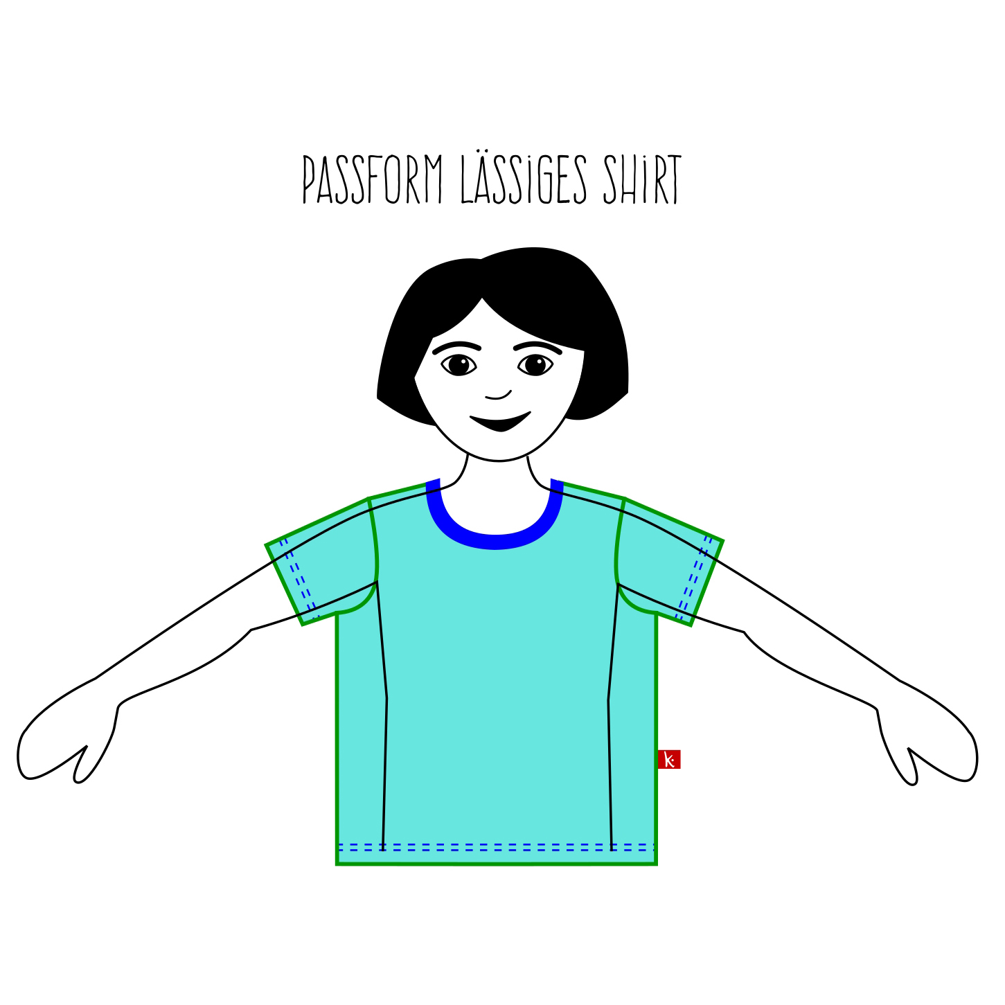 Das Lässige Shirt ist Locker lässig geschnitten und liegt in der Weite zwischen dem Basic und dem Oversized Shirt. Ob lange oder kurze Ärmel: Nähe fix einen Stapel Basics für jeden Tag oder nutze den Schnitt als Leinwand für deine eigenen Design Ideen: Experimentiere mit Teilungen, Applikationen, Plotts, Aufnähern und verschiedenen Verarbeitungsoptionen wie Säumen oder Einfassungen. Ich bin gespannt, was du dir ausdenkst!