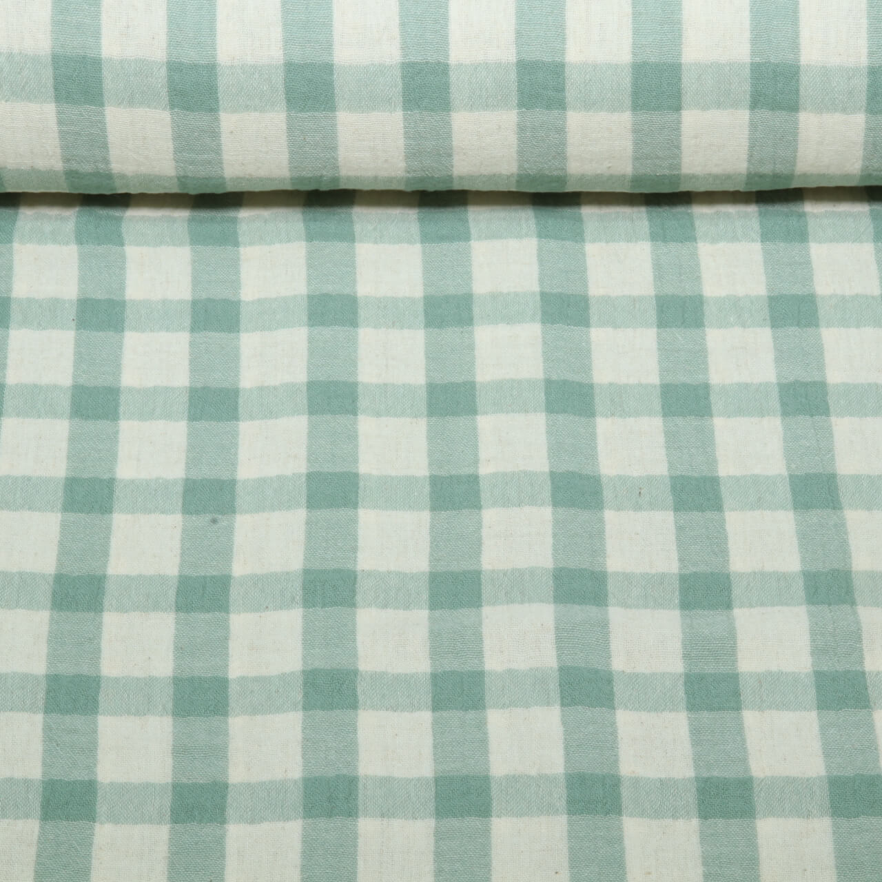 Leinen Musselin - Karo Ecru Grün Garngefärbt
