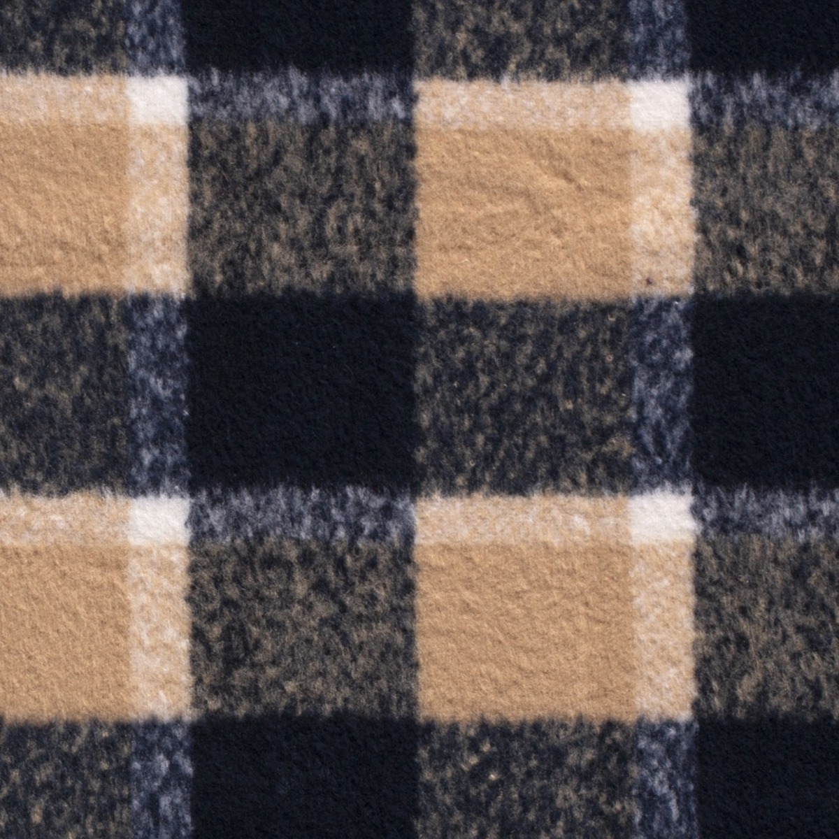 Mantelstoff Gebürstet Karo Hellbraun/Dunkelblau