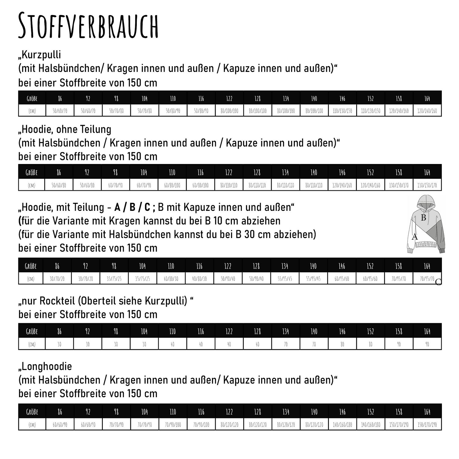 - Zusätzlich zum Hauptstoff benötigst du optional eine Kordel (für die Kapuze / den Kragen),