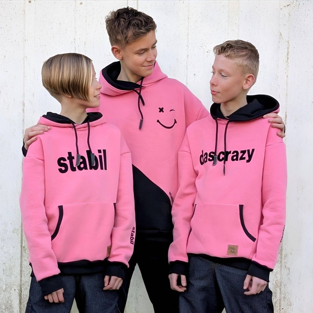 Der Mini Wiisshornblick (abgekürzt WB) ist leicht oversize geschnitten und kann wahlweise in Kurzpullilänge (optional mit schmalem Gummizug), normaler Länge mit Bündchen, als Kleid mit Rockteil oder als Longhoodie mit Bündchen genäht werden. Es stehten eine Kängurutasche und ein Kordeltunnel zur Verfügung. Je nach Geschmack kann zwischen einem Halsbündchen, leicht überschnittener Kapuze und einem Kragen variiert werden. Wer es gerne farbenfroh mag, dem sind mit der Colour-Blockingvariante keine Grenzen gesetzt. Die Bündchen können aus Hauptstoff oder Bündchenware genäht werden.