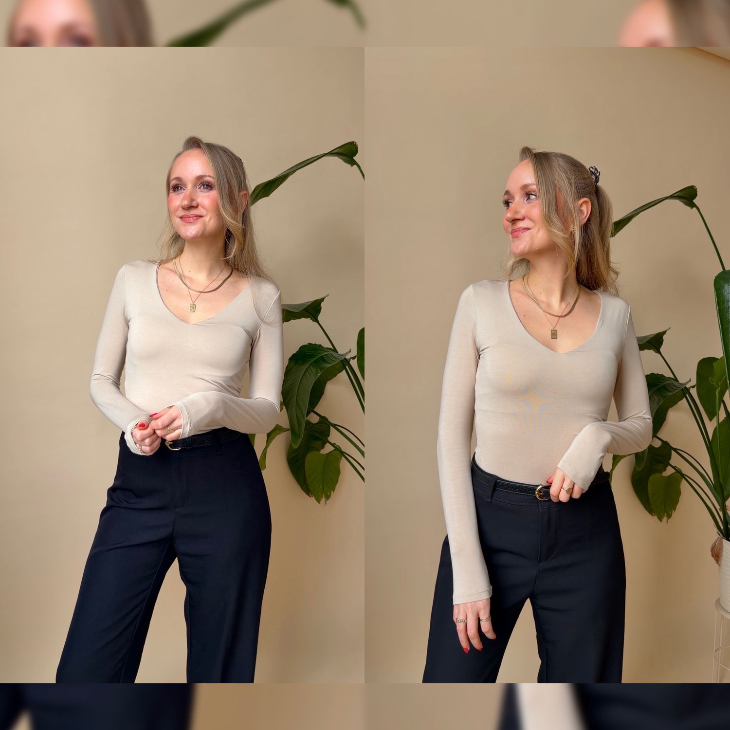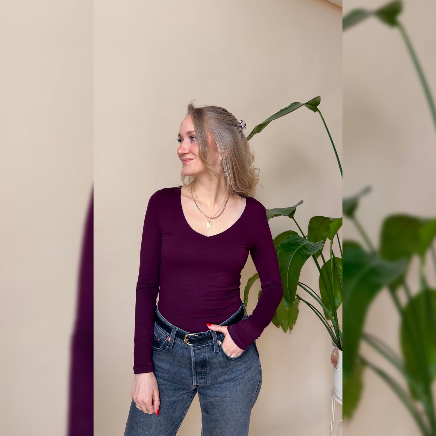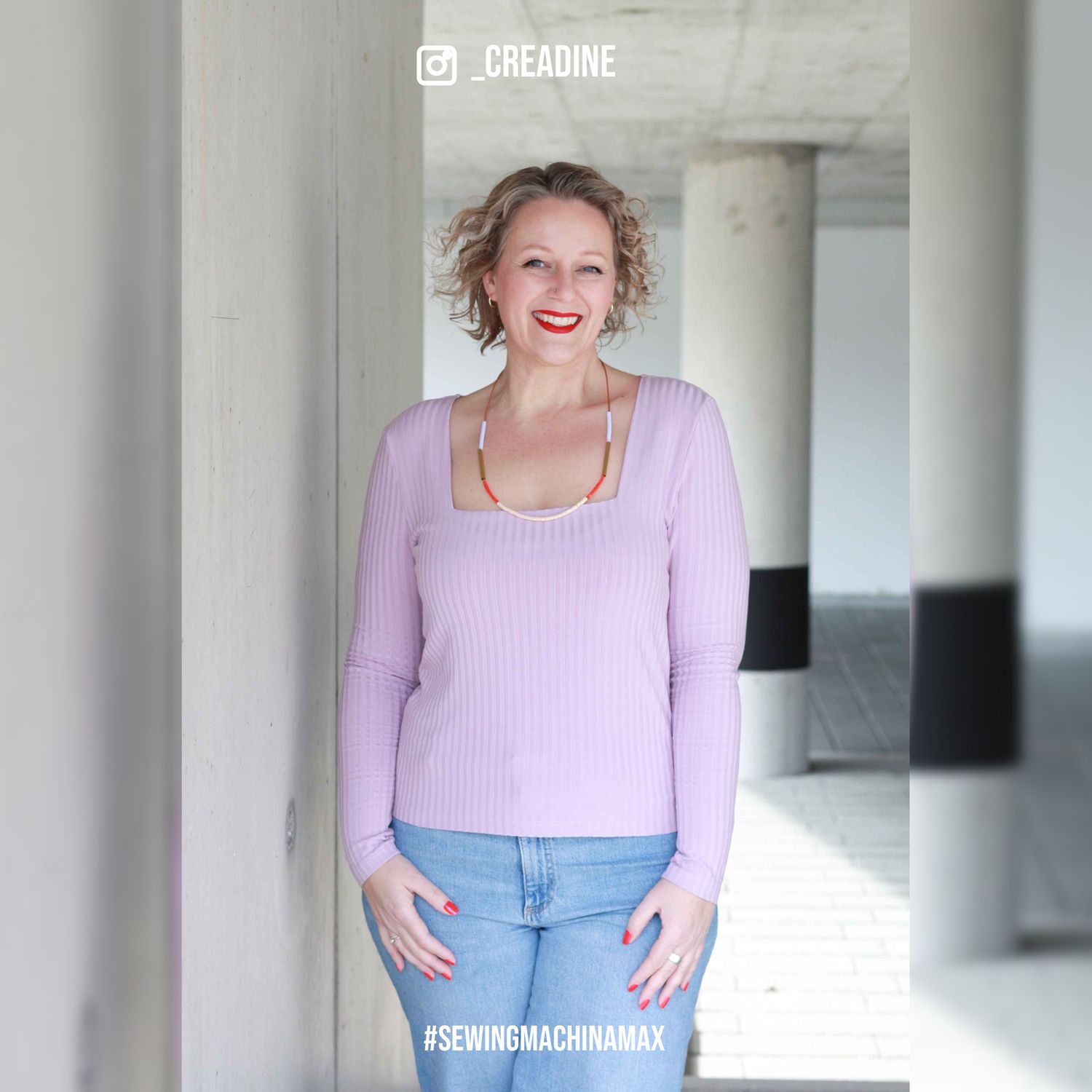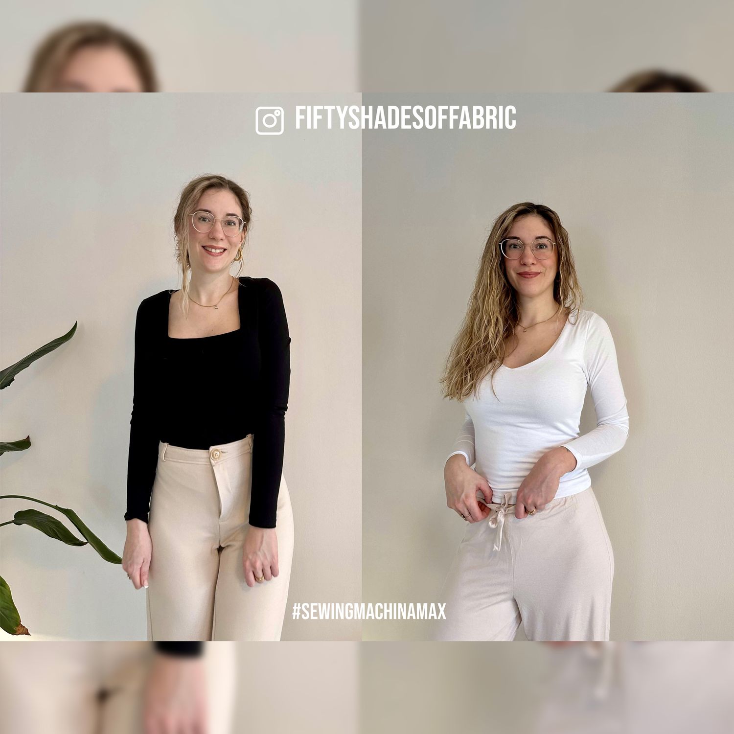Näh dir mit diesem Schnittmuster dein perfektes Basicshirt! Wähle zwischen V-Ausschnitt oder eckigem Ausschnitt, sowie 3 verschiedenen Längen und Ärmellängen. Für Max eignen sich alle Arten von Jersey mit einem Stretchfaktor von 70-90%, wie z.B. Viskose- oder Bambusjersey, Lycra, Rippjersey, dünne Baumwolljerseys etc. (Dieser Stretchfaktor bedeutet, dass du deinen Stoff auf seine 1,7 bis 1,9-fache Breite dehnen kannst)