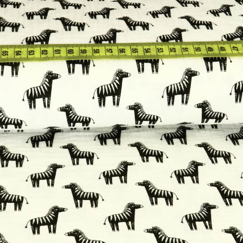 Musselin Double Gauze Zebras auf Creme