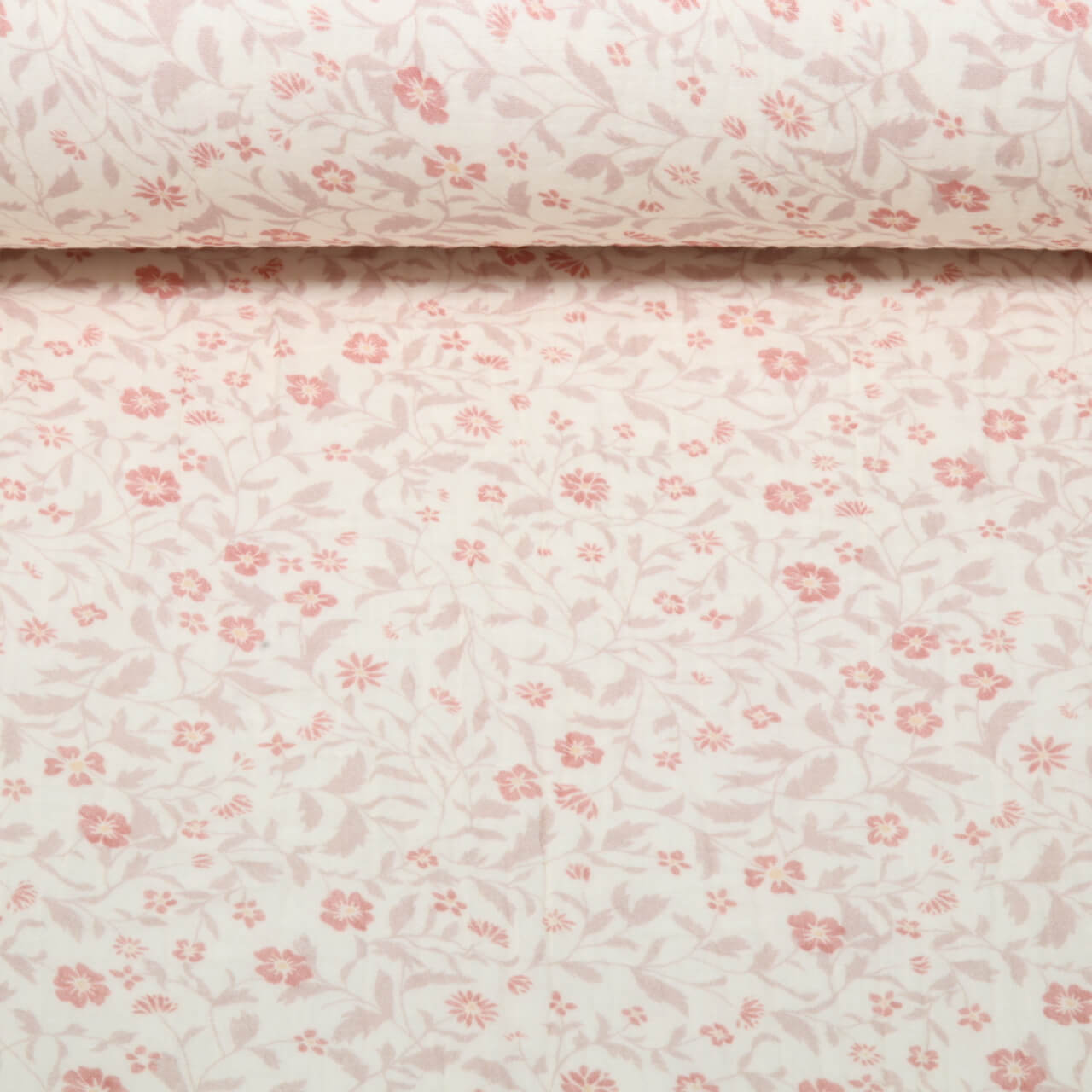 Musselin Extrabreit - Blumen Ecru Altrosa 250cm