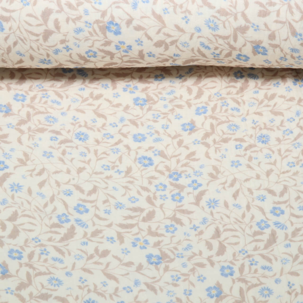 Musselin Extrabreit - Blumen Ecru Blau 250cm