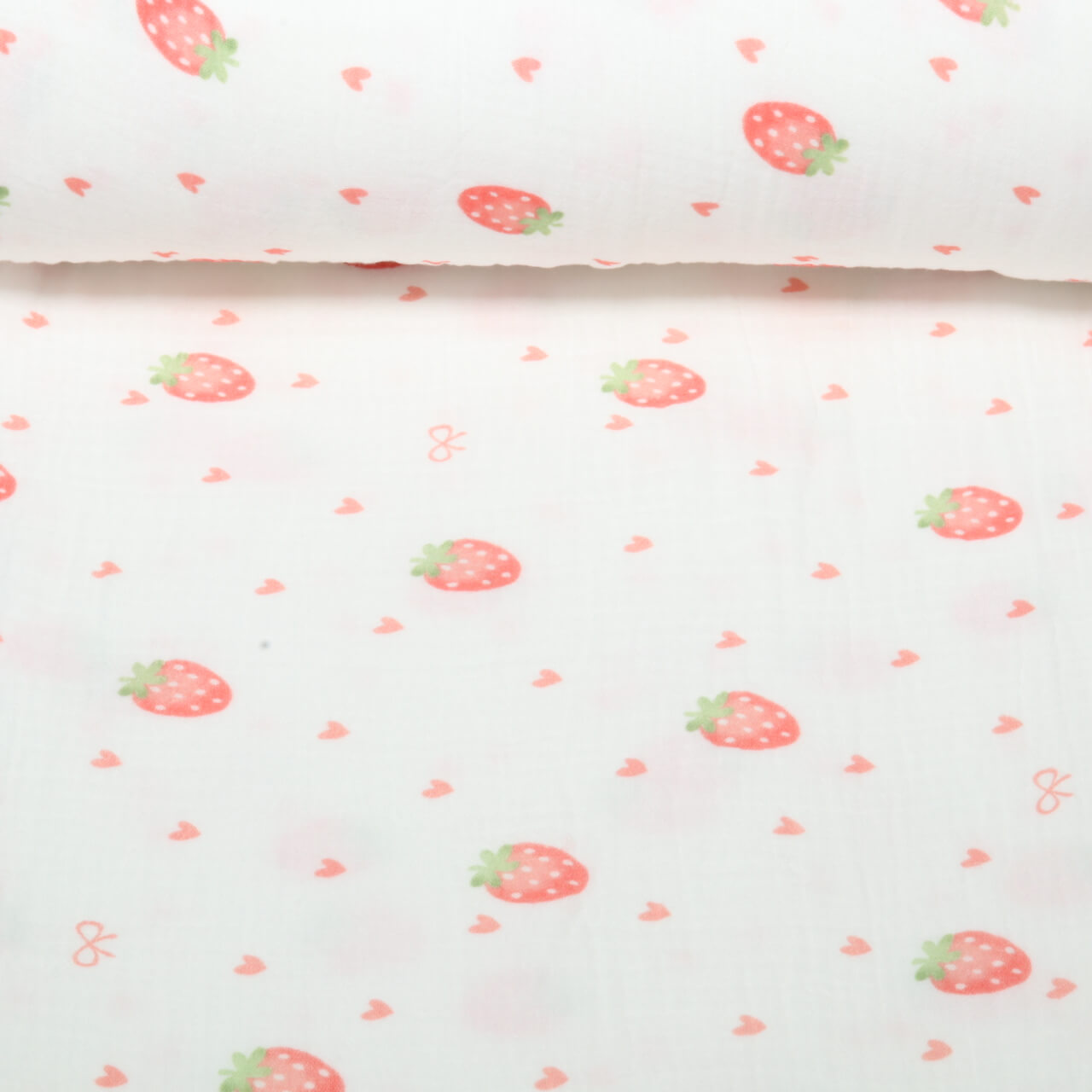 Musselin Extrabreit - Erdbeeren Weiß 250cm