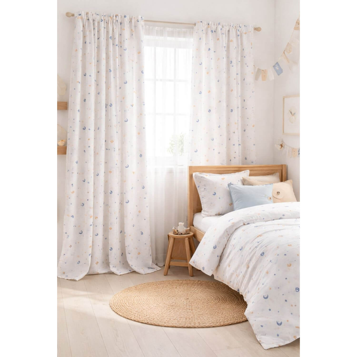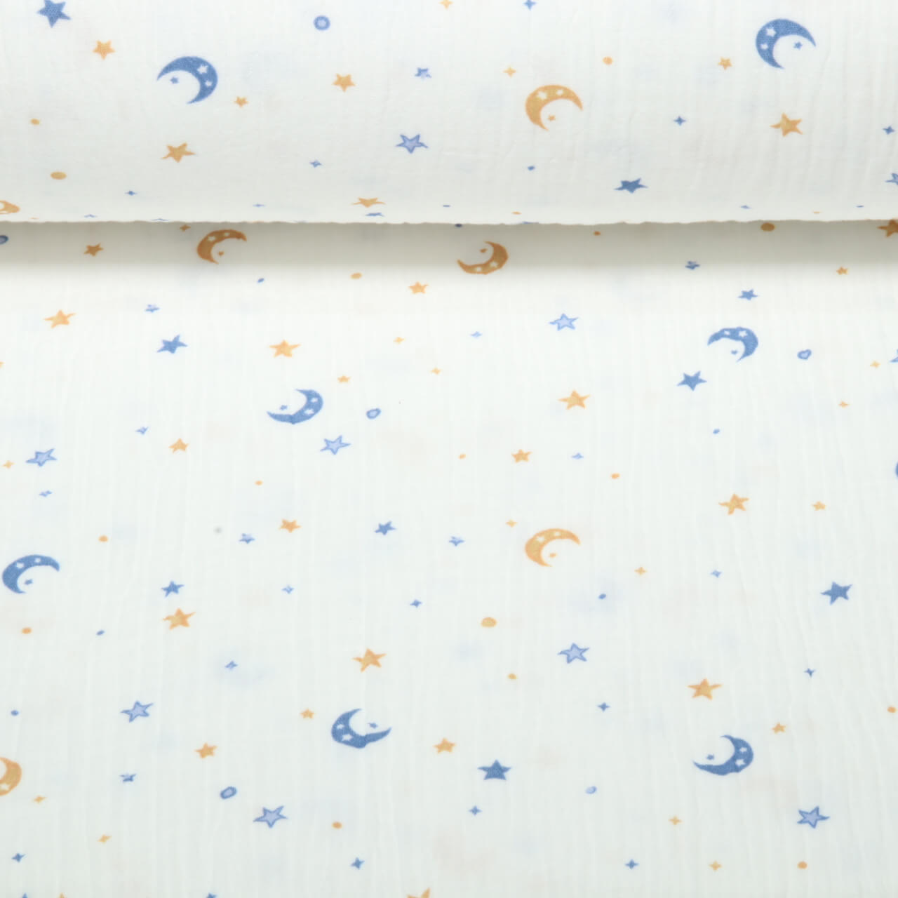 Musselin Extrabreit - Mond und Sterne Weiß 250cm
