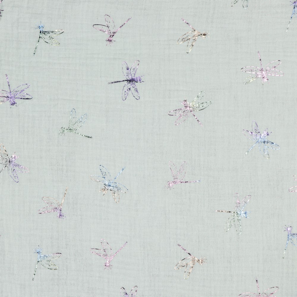Musselin FOLIENDRUCK Metallic Libellen auf Creme