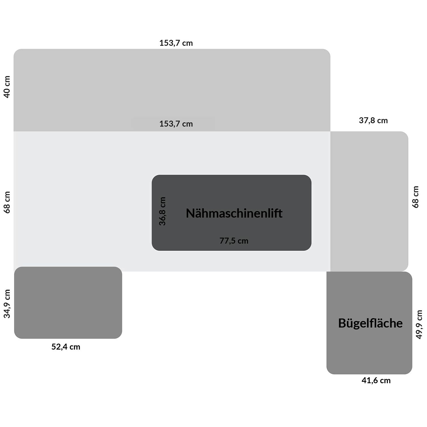 Der „Premium“ bietet eine riesige Arbeitsfläche und clevere Stauraumlösungen für all deine Näh- und Stickprojekte. Mit dem Hydrauliklift passt er für besonders große Maschinen bis ca. 30 kg. Die ausklappbaren Rück- und Seitenteile erweitern die Fläche, während der Tisch bei Nichtgebrauch auf ca. 155 cm x 70 cm zusammenklappbar ist – platzsparend und praktisch.