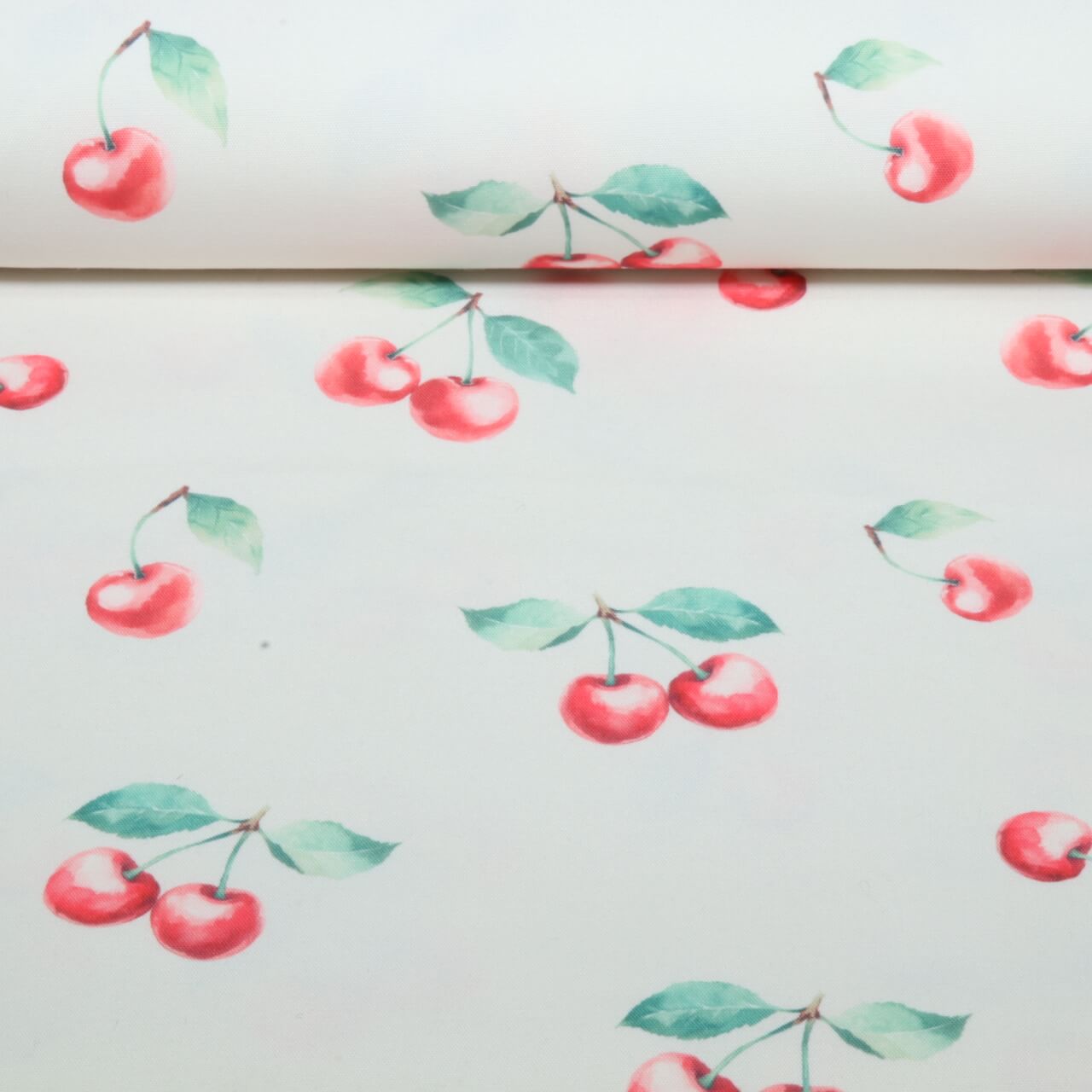 Outdoorstoff - Digital Wasserabweisend Kirschen Weiß
