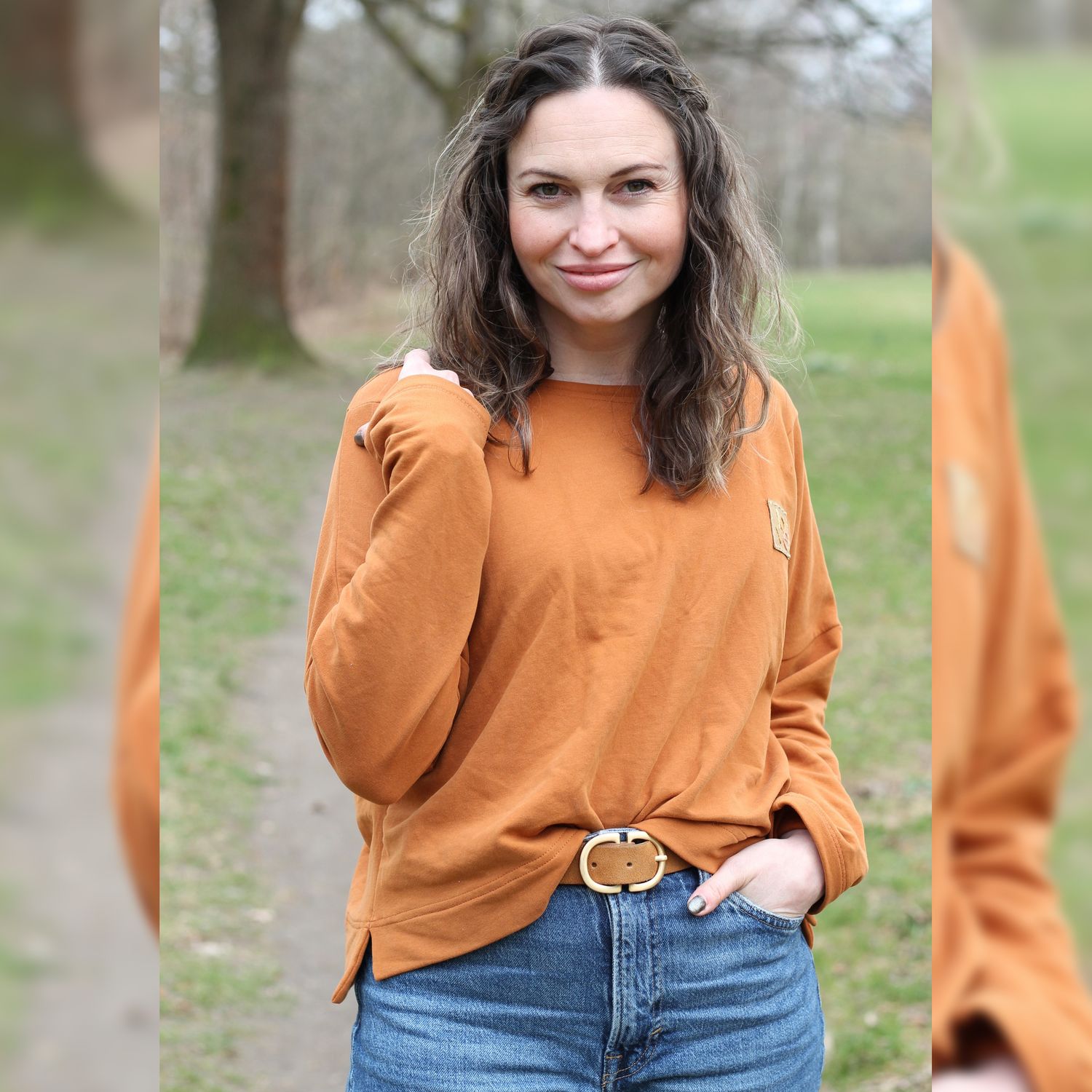Außerdem kann wahlweise ein regulärer oder Schlitz-Saum genäht werden. Der Saum-Gummi-Zug macht den Pulli zum richtigen Hingucker! Durch den legeren Sitz wird Ruth super bequem und passt perfekt zur Jeans.