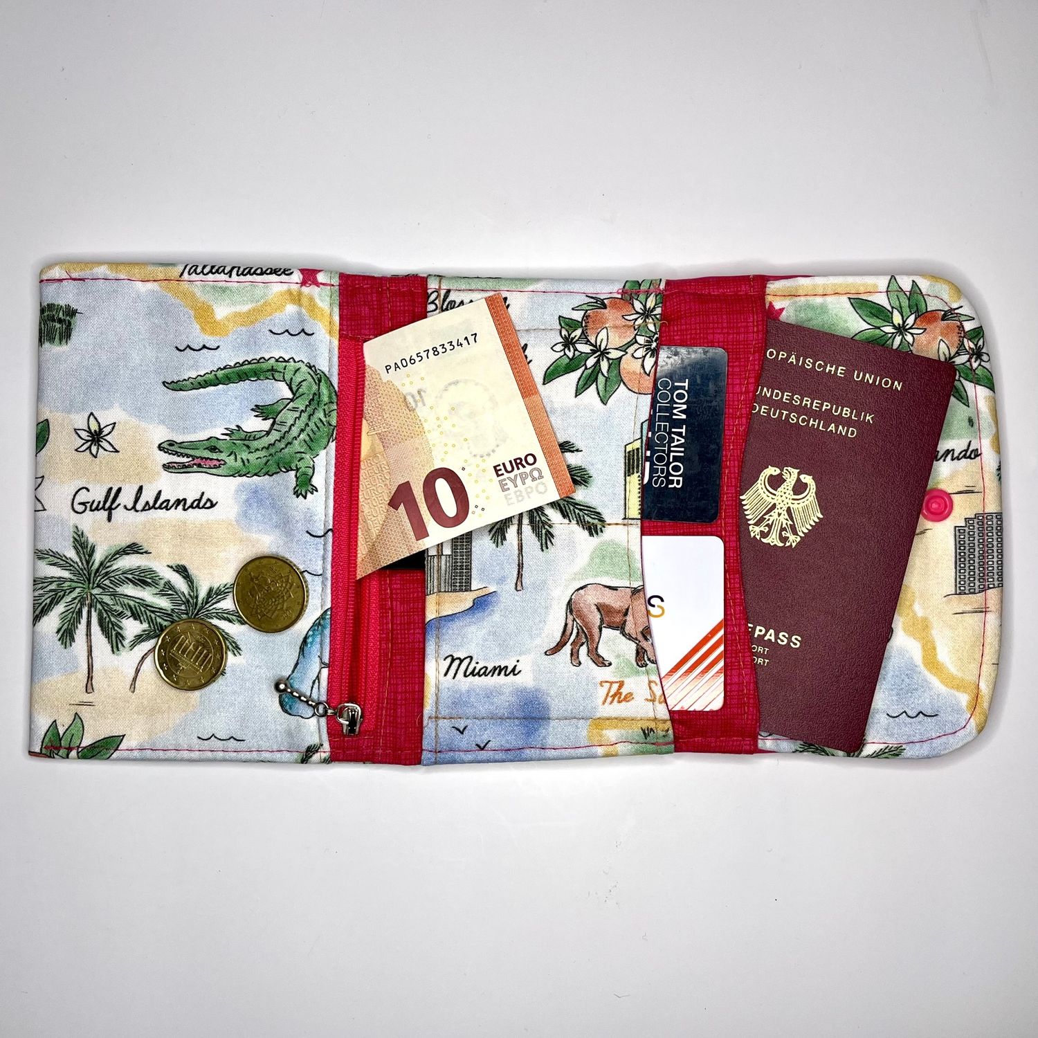 - Zwei Kartenfächer – ideal für Hotelkarten, Reiseversicherungen oder Kreditkarten.