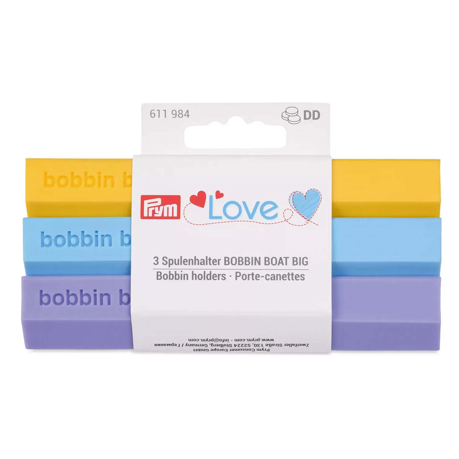 Mit den BOBBIN BOAT BIG von Prym bewahrst Du große „Jumbo Size“-Spulen (26 mm) übersichtlich und platzsparend auf. Jeder Halter bietet Platz für bis zu 9 Spulen – perfekt für die BERNINA 4er-, 5er- und 7er-Serie. Im Set erhältst Du gleich drei Halter in Gelb, Blau und Flieder.