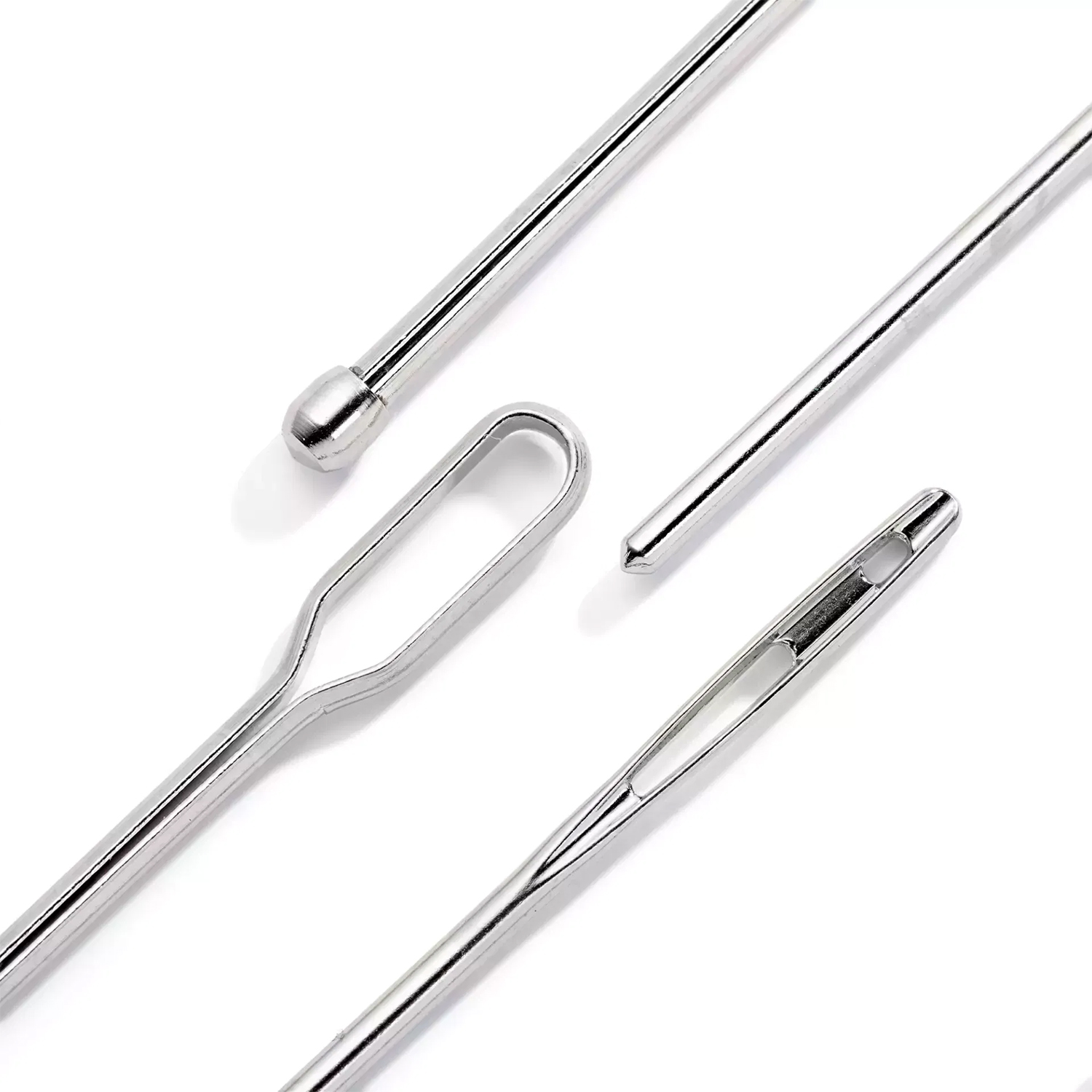 Die zwei unterschiedlichen Nadelformen bieten Dir maximale Flexibilität für verschiedene Materialien und Bandstärken. Dank der abgerundeten Spitzen gleiten sie mühelos durch den Stoff, ohne ihn zu beschädigen. Gleichzeitig sorgen die großen bzw. speziellen Öhre dafür, dass Du sowohl dicke als auch feine Bänder sicher einfädeln kannst.