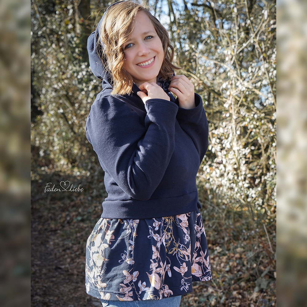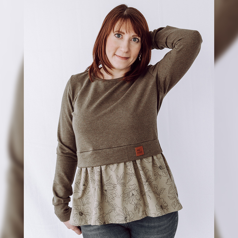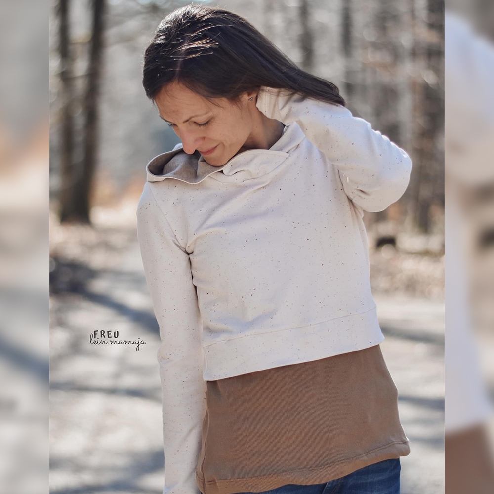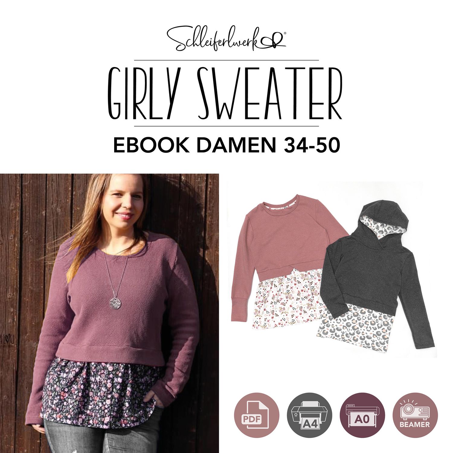 Der Girly Sweater ist ein etwas lockerer geschnittener Pullover im Cropped-Look. Du hast die Wahl zwischen Kapuze, Halsausschnitt mit Beleg oder Bündchen, kurzem und langem Rockteil oder Top und gesäumten Ärmeln oder Armbündchen.